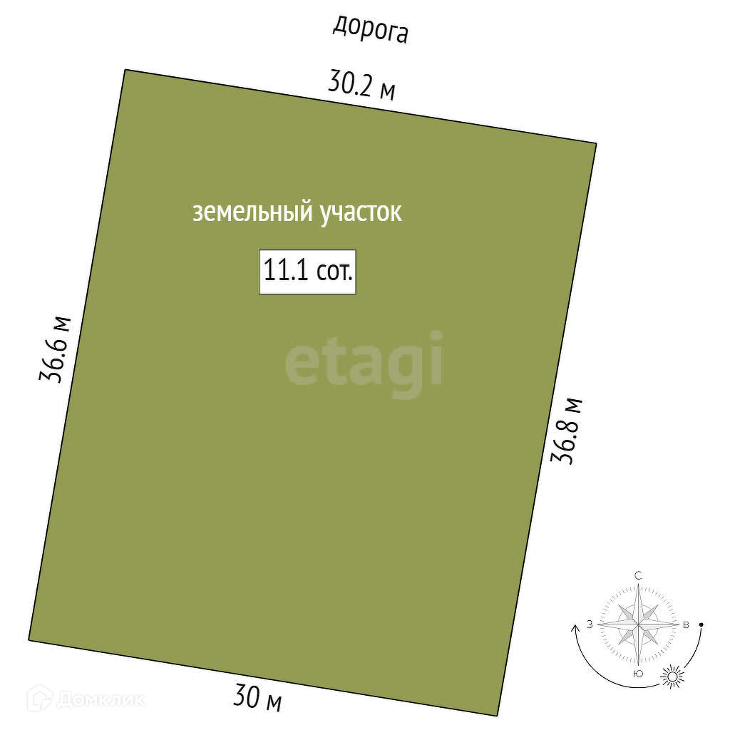 Площадь участка 11.1 сот.