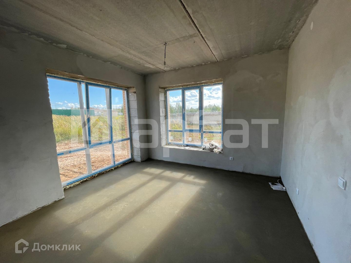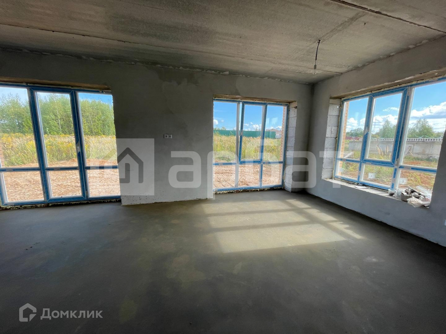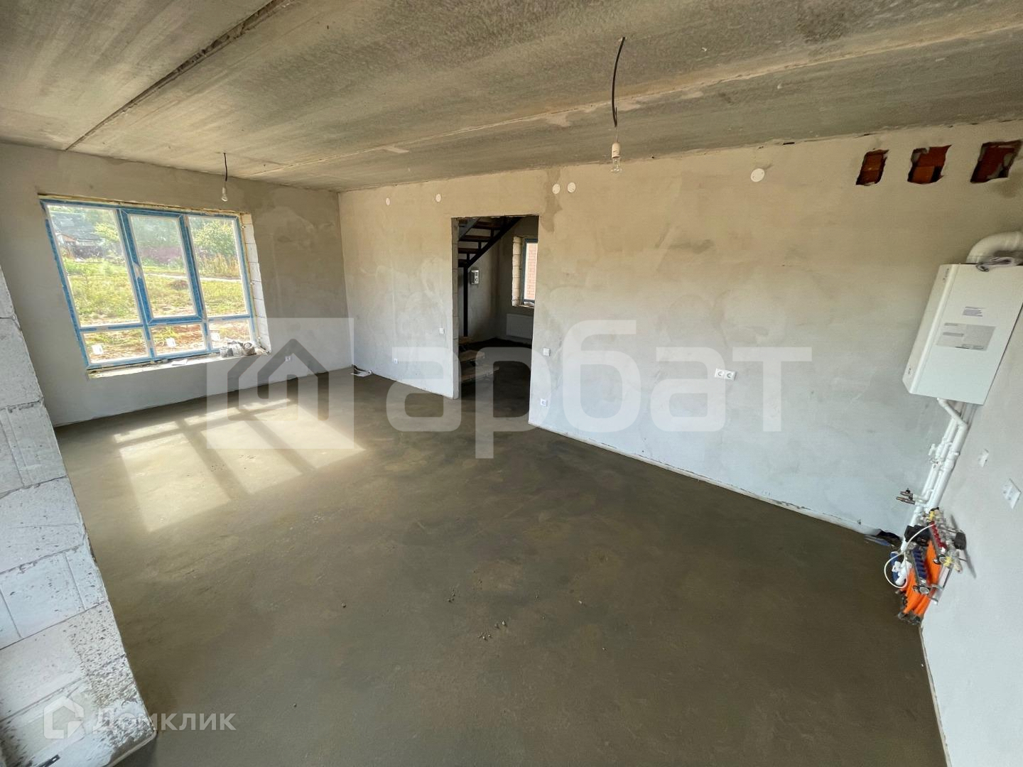 Комплектация дома - 4 комнаты, большая ( 30 кв.м. ) кухня-гостиная, санузел на каждом этаже, гардеробная. Сделана стяжка на обоих этажах, на первом этаже смонтирован теплый пол. Стены выровнены гипсовой штукатуркой. Сделана разводка электричества до потребителей.
