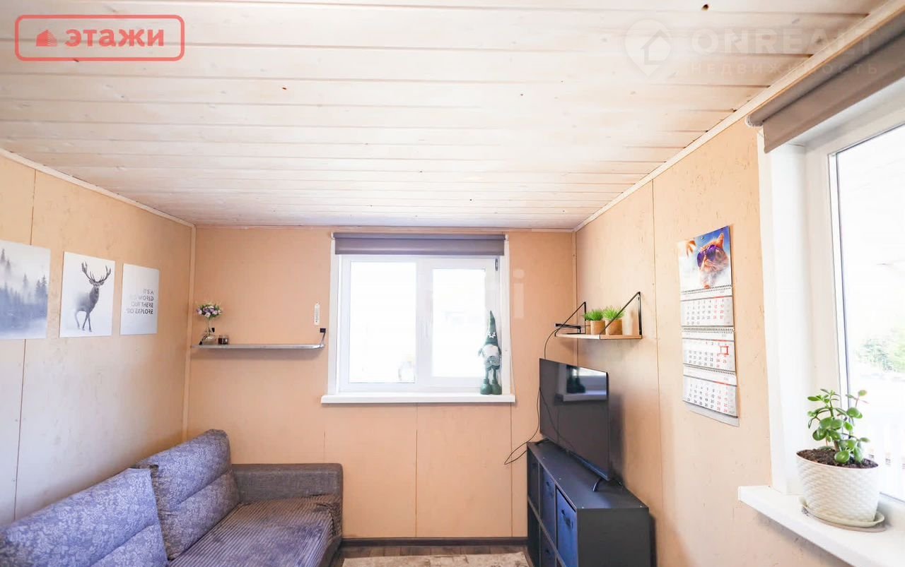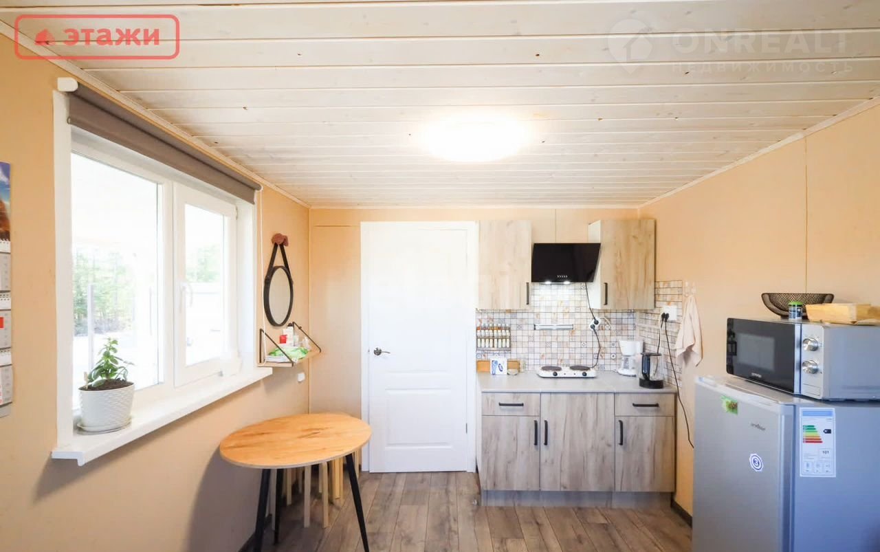Мини-дом размерами 6*6 м с крытой террасой площадью 18 кв.м. с учетом внутренней отделки представляет собой полностью жилое помещение, в котором удобно расположены комната с зоной диван-телевизор, совмещенная с кухней и обеденной группой, прихожая (тамбур) и помещение санузла. Мини-дом выполнен по каркасной технологии (установлен силовой каркас из сухой доски), обшит окрашенной влагостойкой ОSВ, установлены ПВХ-окна, металлическая входная дверь.
