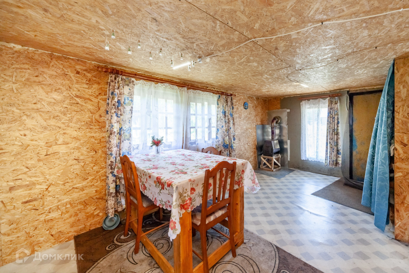 Кухня-гостиная где установлена печь.