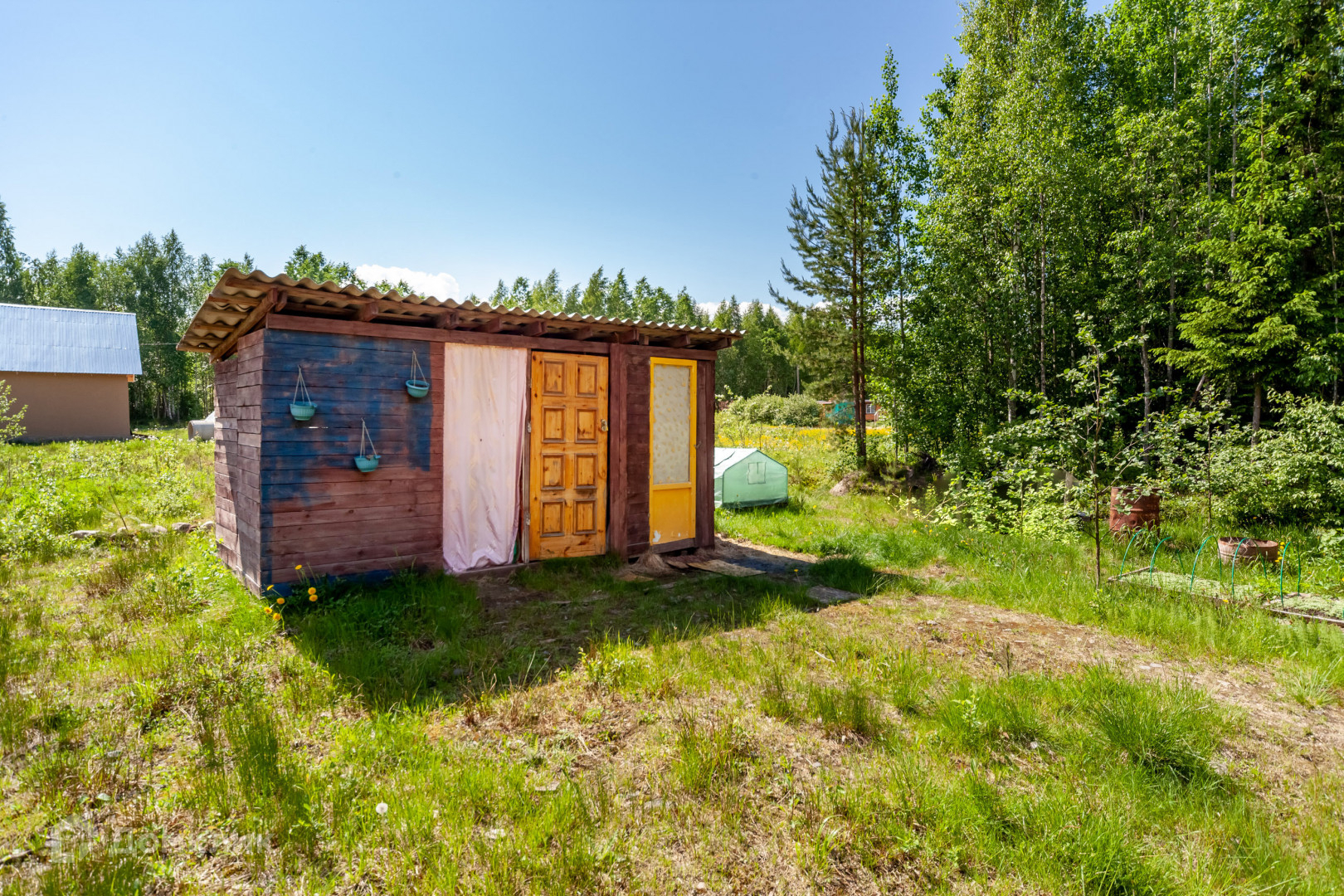 Есть два хоз помещения для хранения вещей и садовых принадлежностей и сан узел.