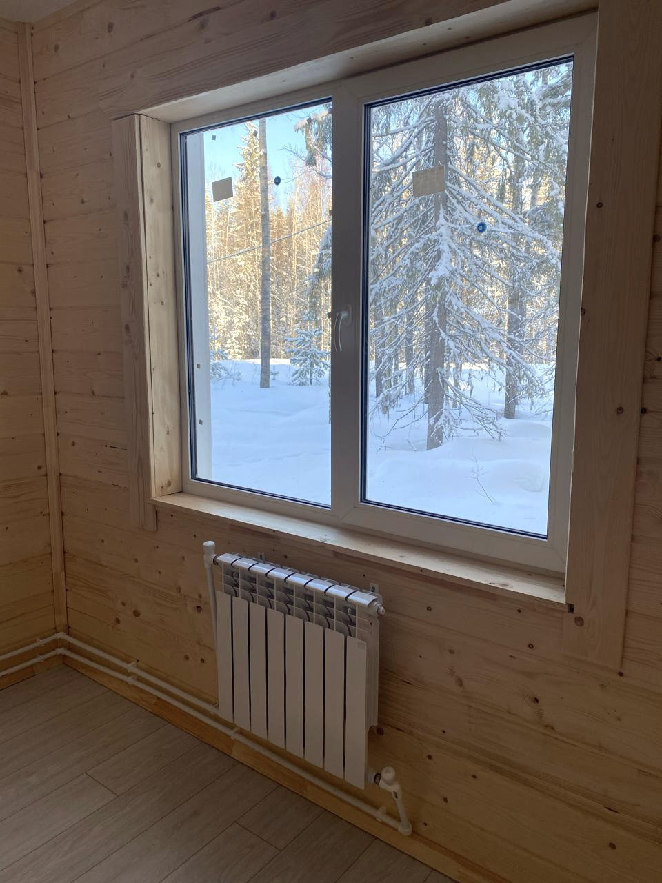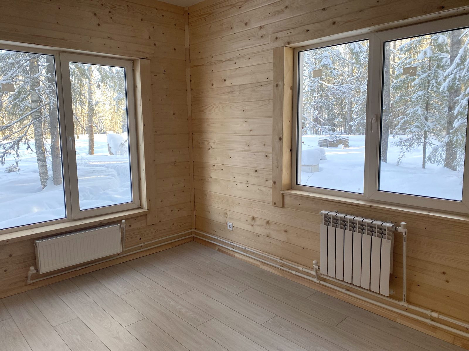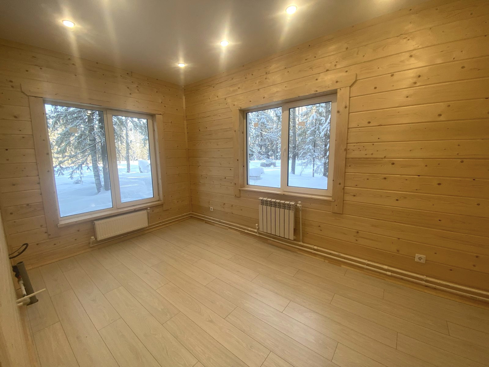 Качественные материалы: влагостойкий дорогой ламинат, двойные стеклопакеты, батареи, межкомнатные двери, натяжные потолки, светильники, установлен унитаз, электрический отопительный котел
