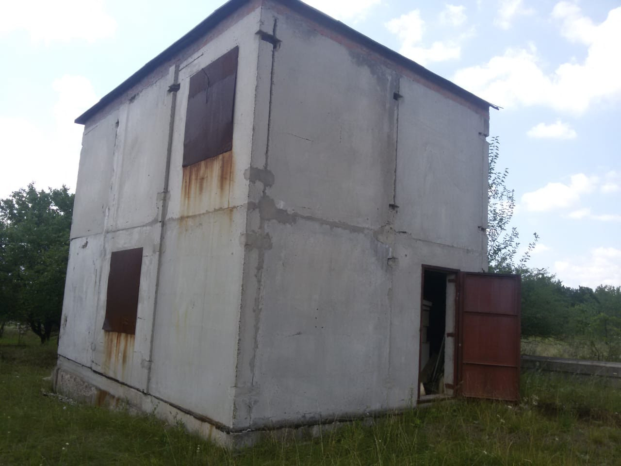 скважина. вода по меже. Дом надо регистрировать , не оформлен. 2 комнаты, подвал.