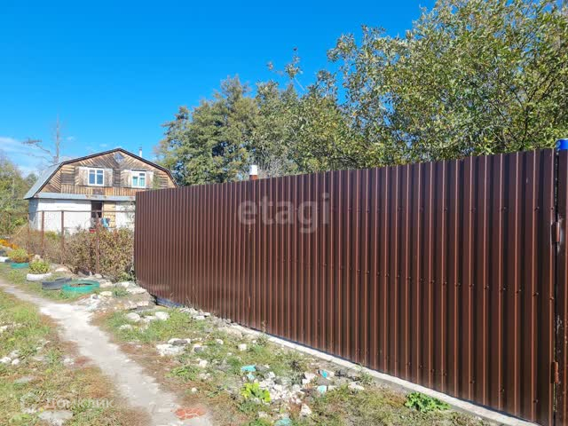 Участок огорожен профлистом и сеткой рабицей. Перед участком есть место для парковки 2-3 машин.
