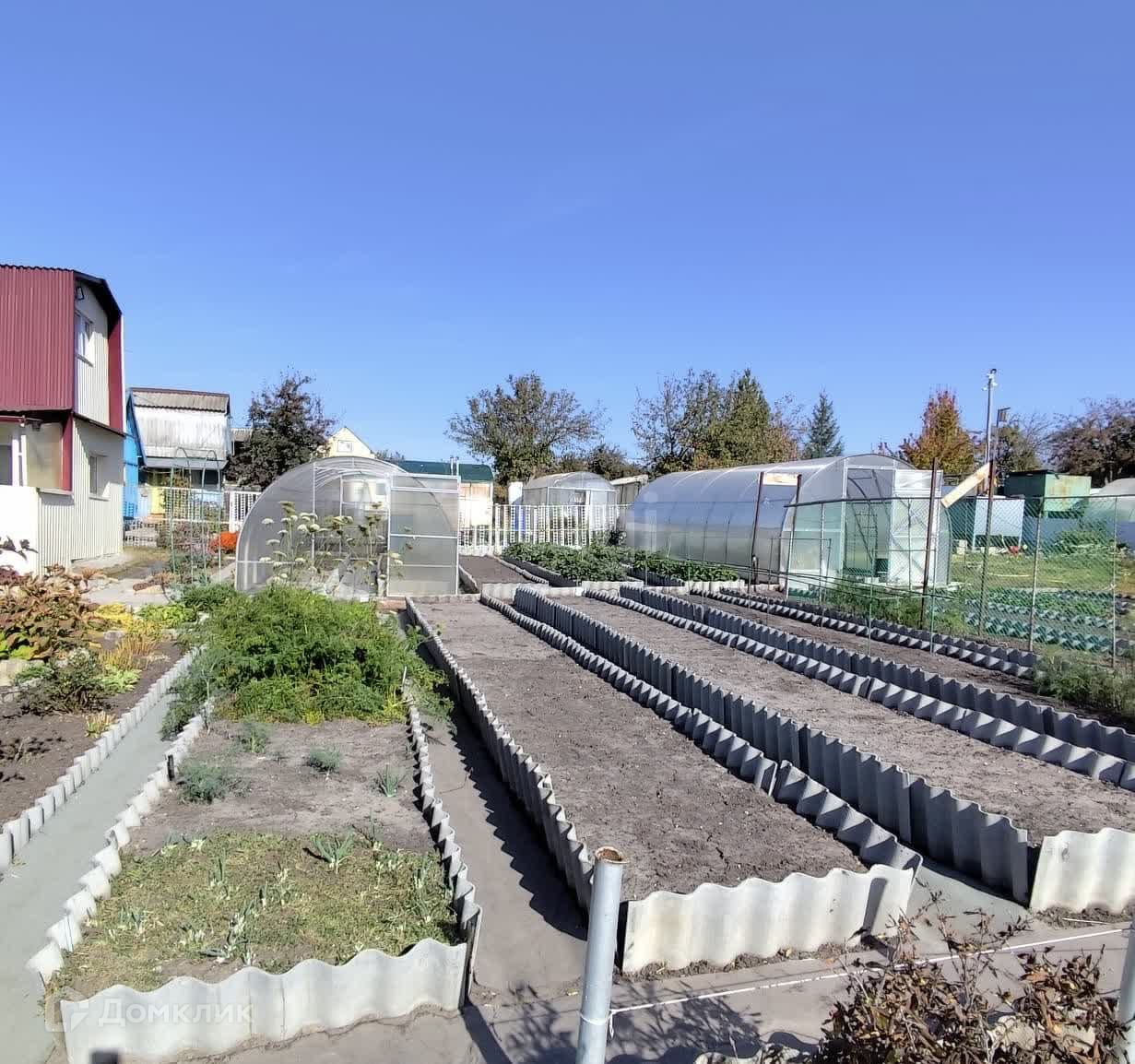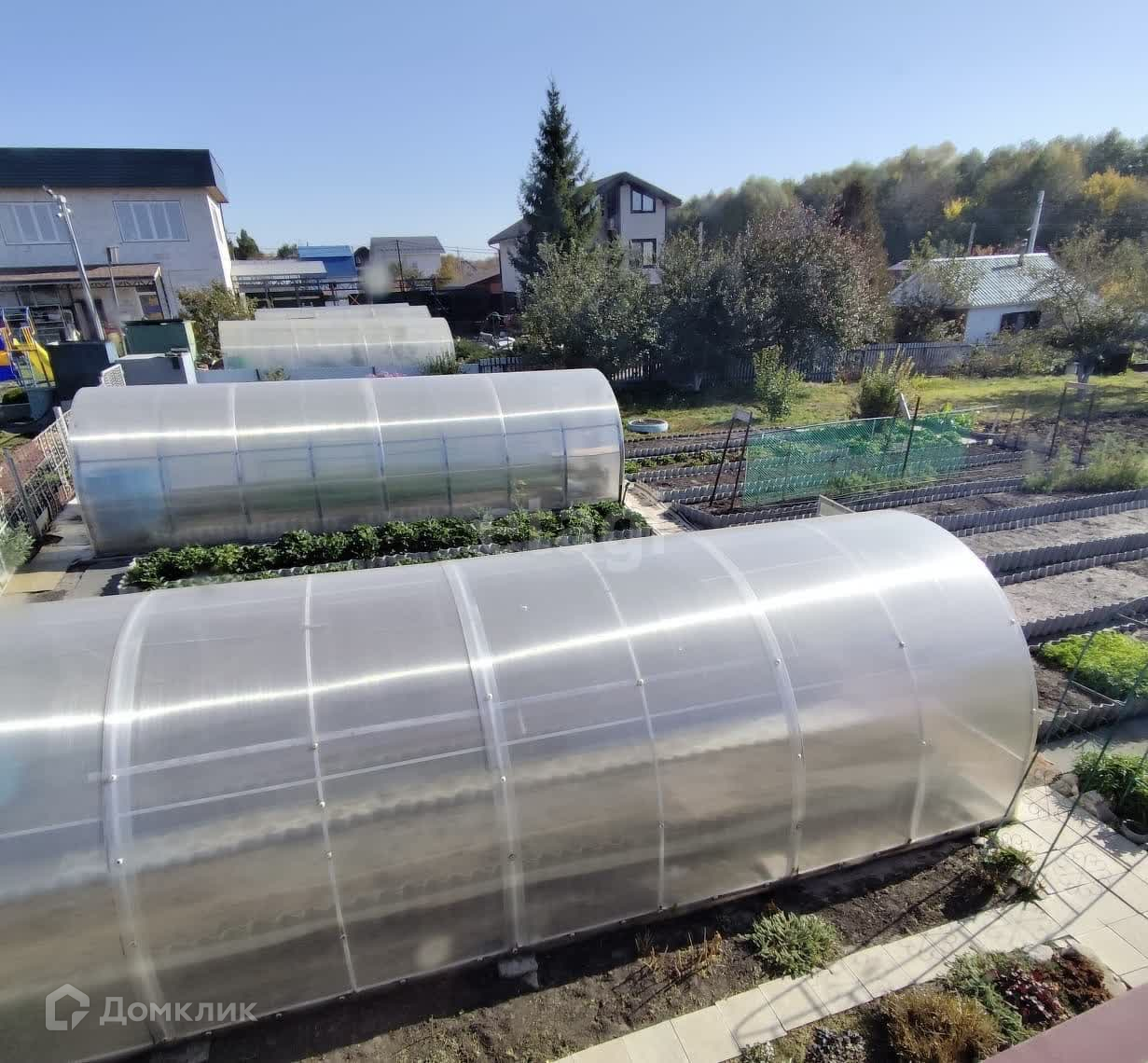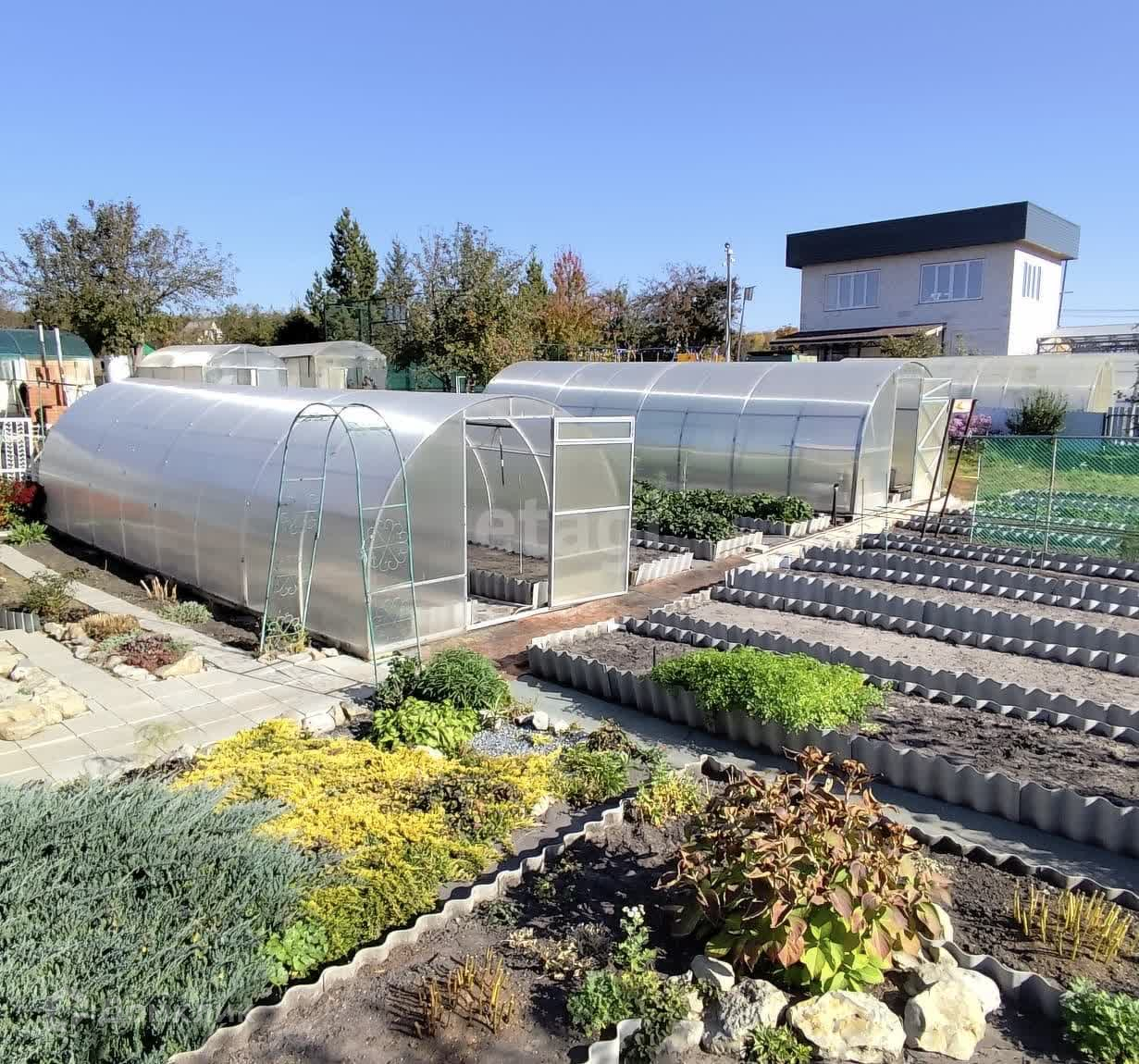 Участок ухоженный, земля плодородная. Есть несколько теплиц, плодовые деревья.