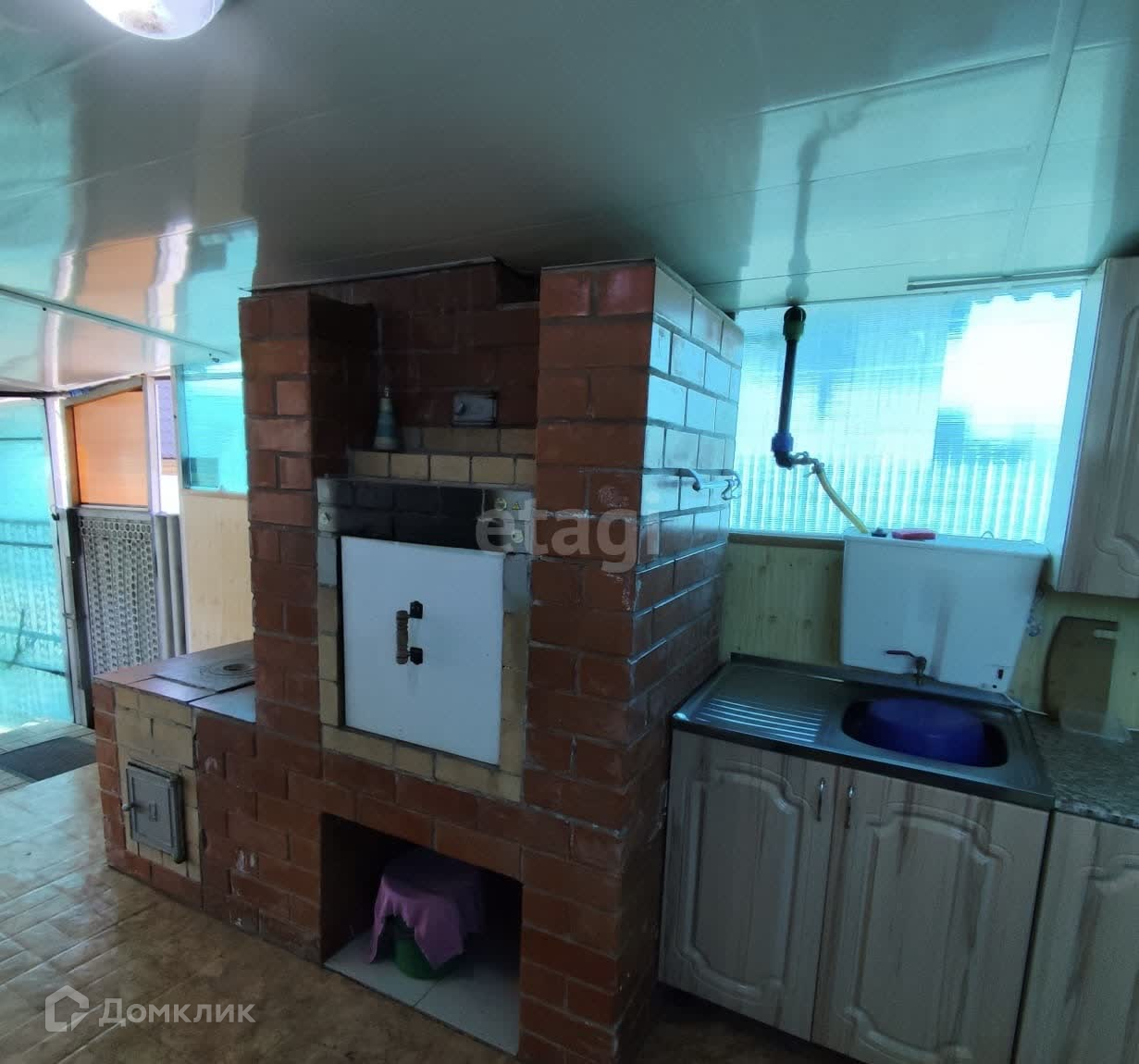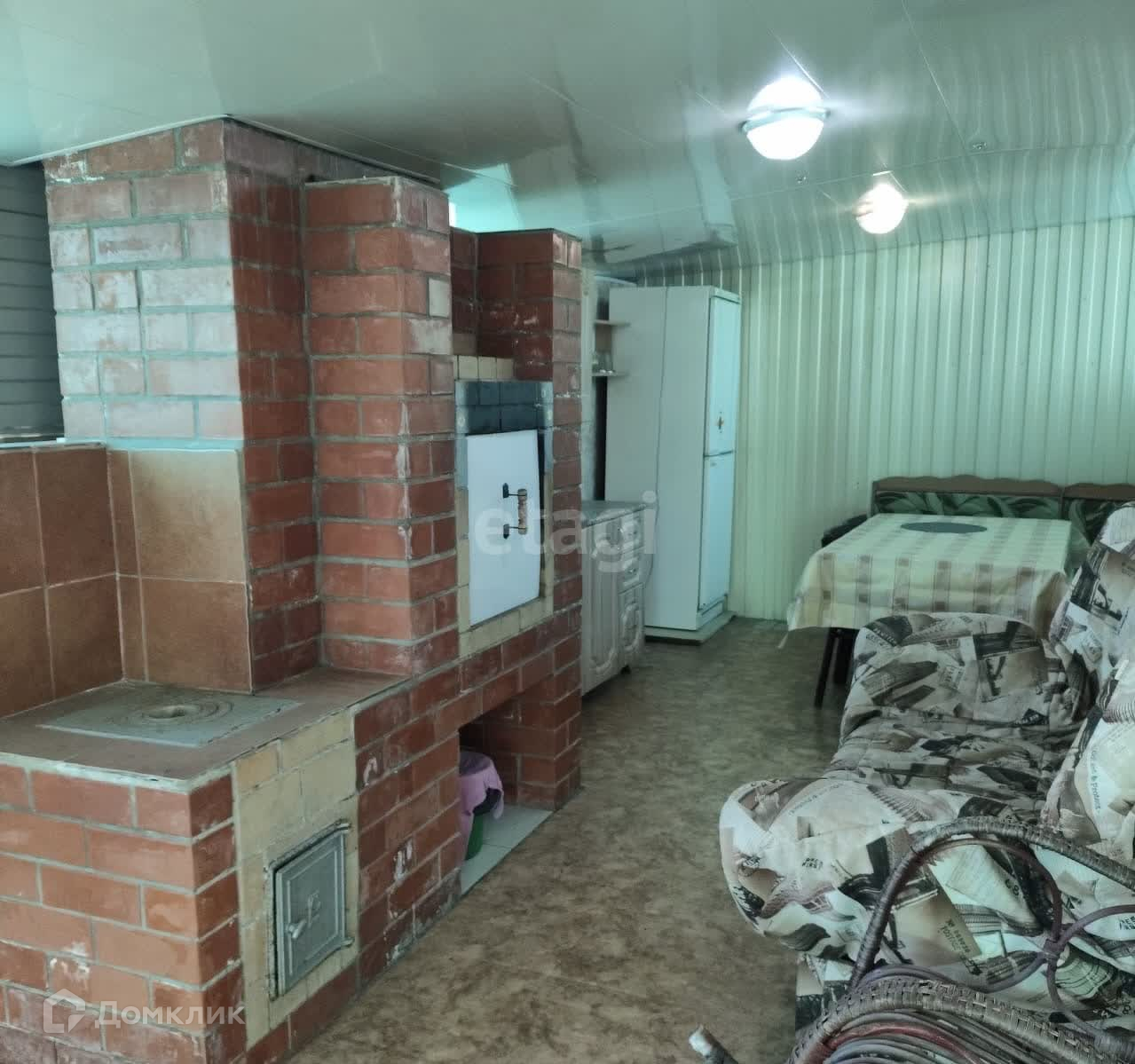 Домик с ремонтом и мебелью. Натяжные потолки, стены отделаны вагонкой, электрические конвекторы, пластиковые окна.