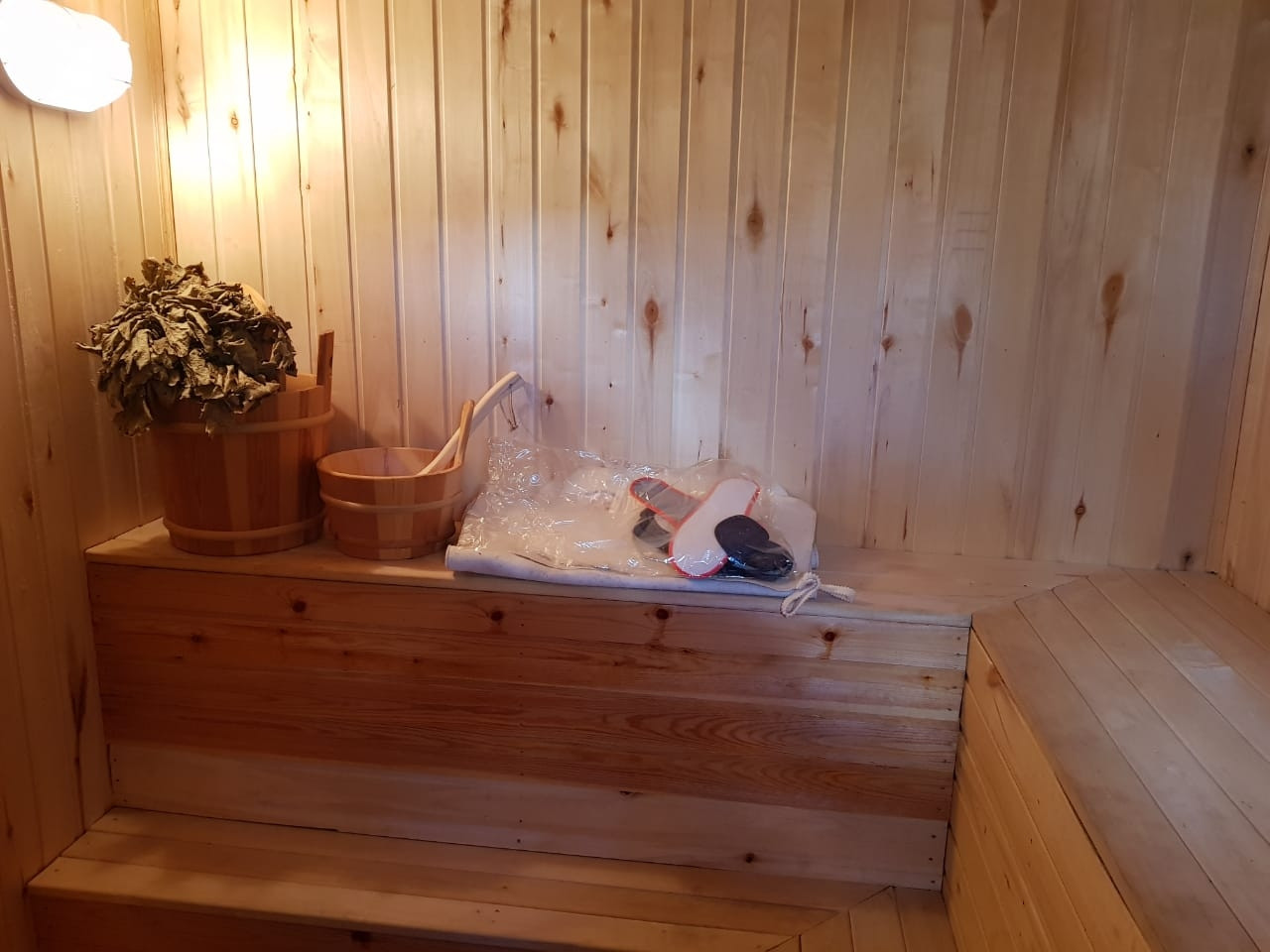 В самом доме имеется  баня-сауна,имеет одну смежную стену с домом и отдельных обособленный вход. В бане также расположена еще одна комната (может служить как комнатой отдыха, так и как гостевой спальней). В бане находятся душ, постирочная и бойлер.