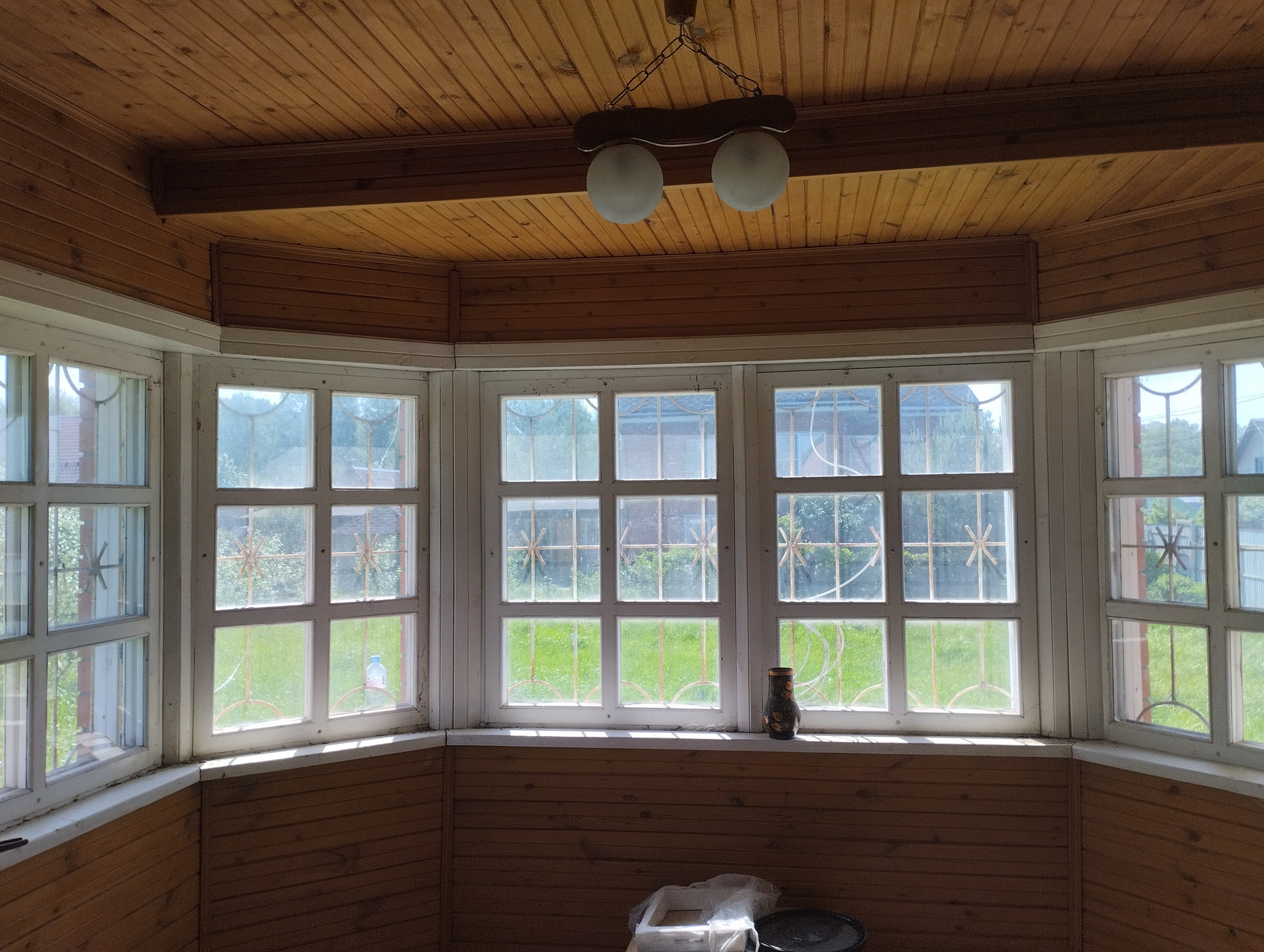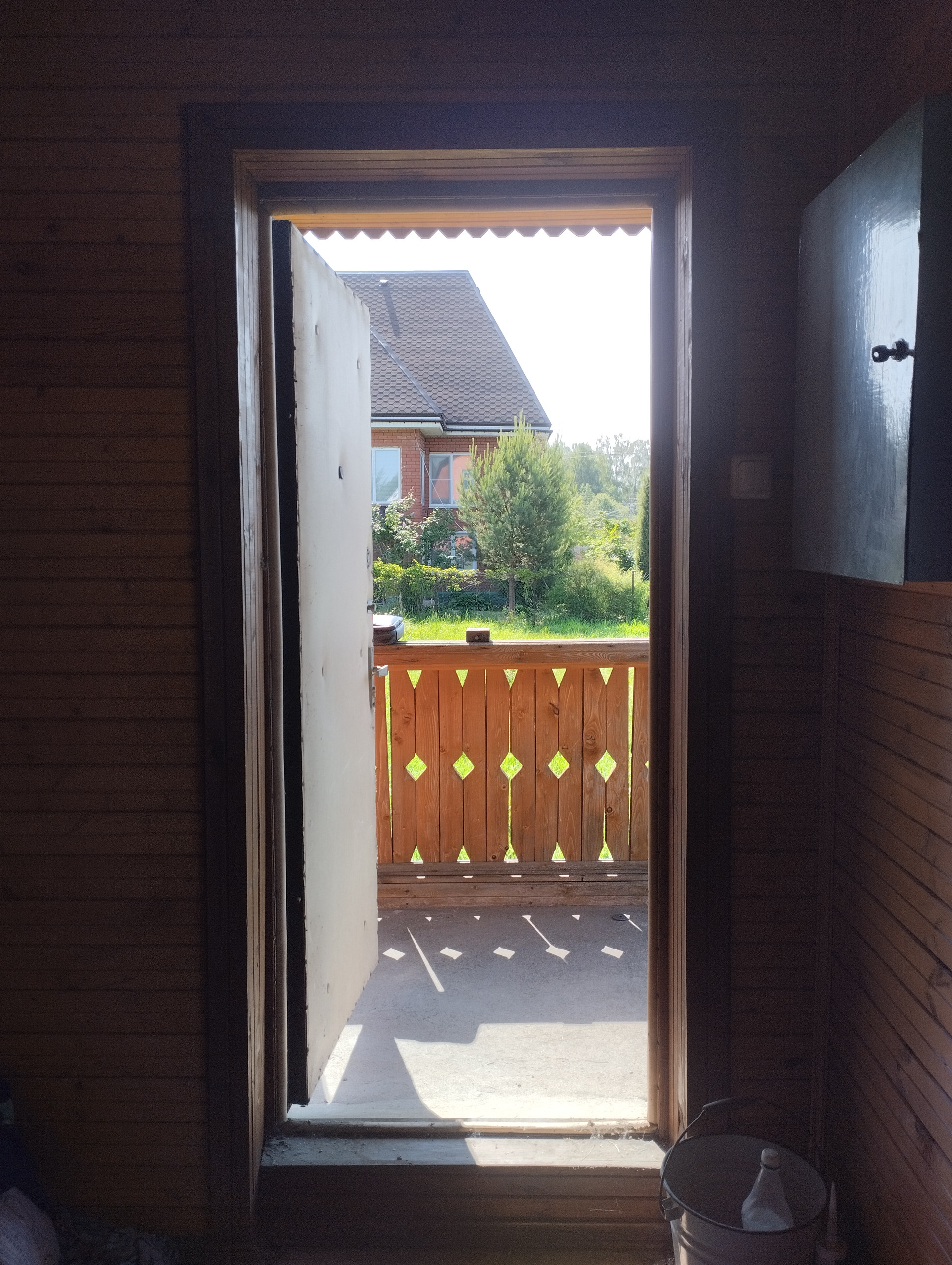 обложен кирпичом, внутри отделано вагонкой.