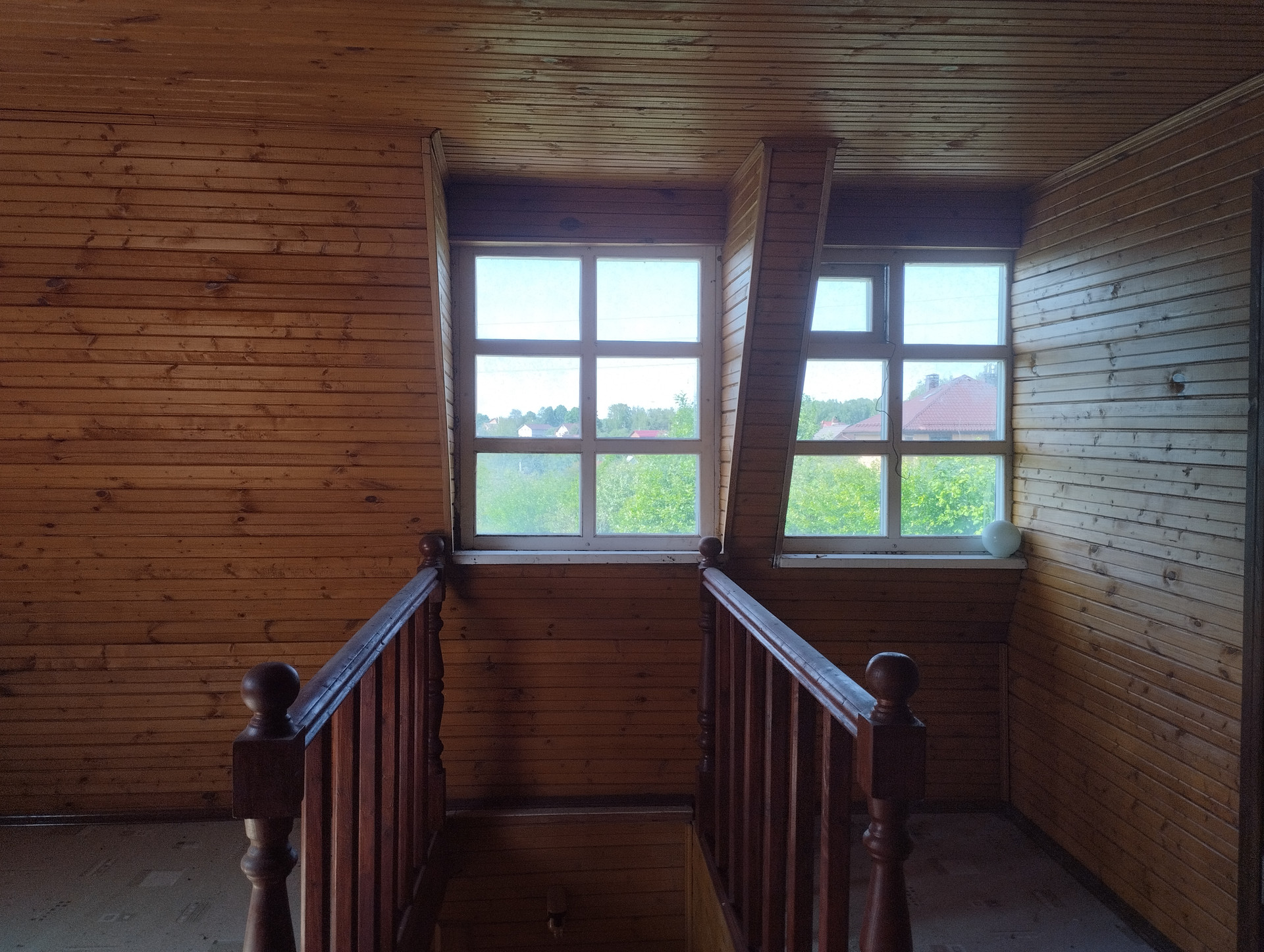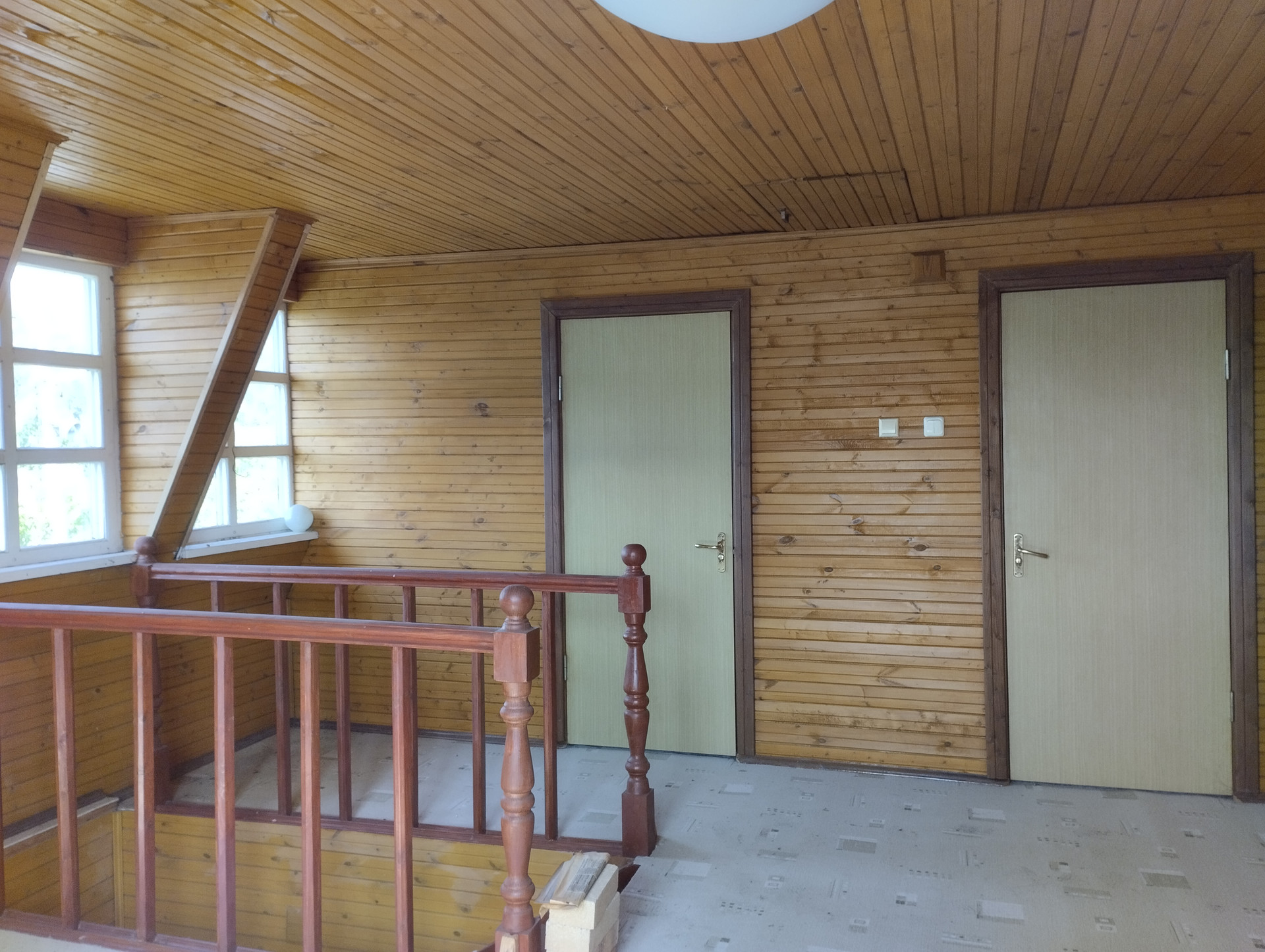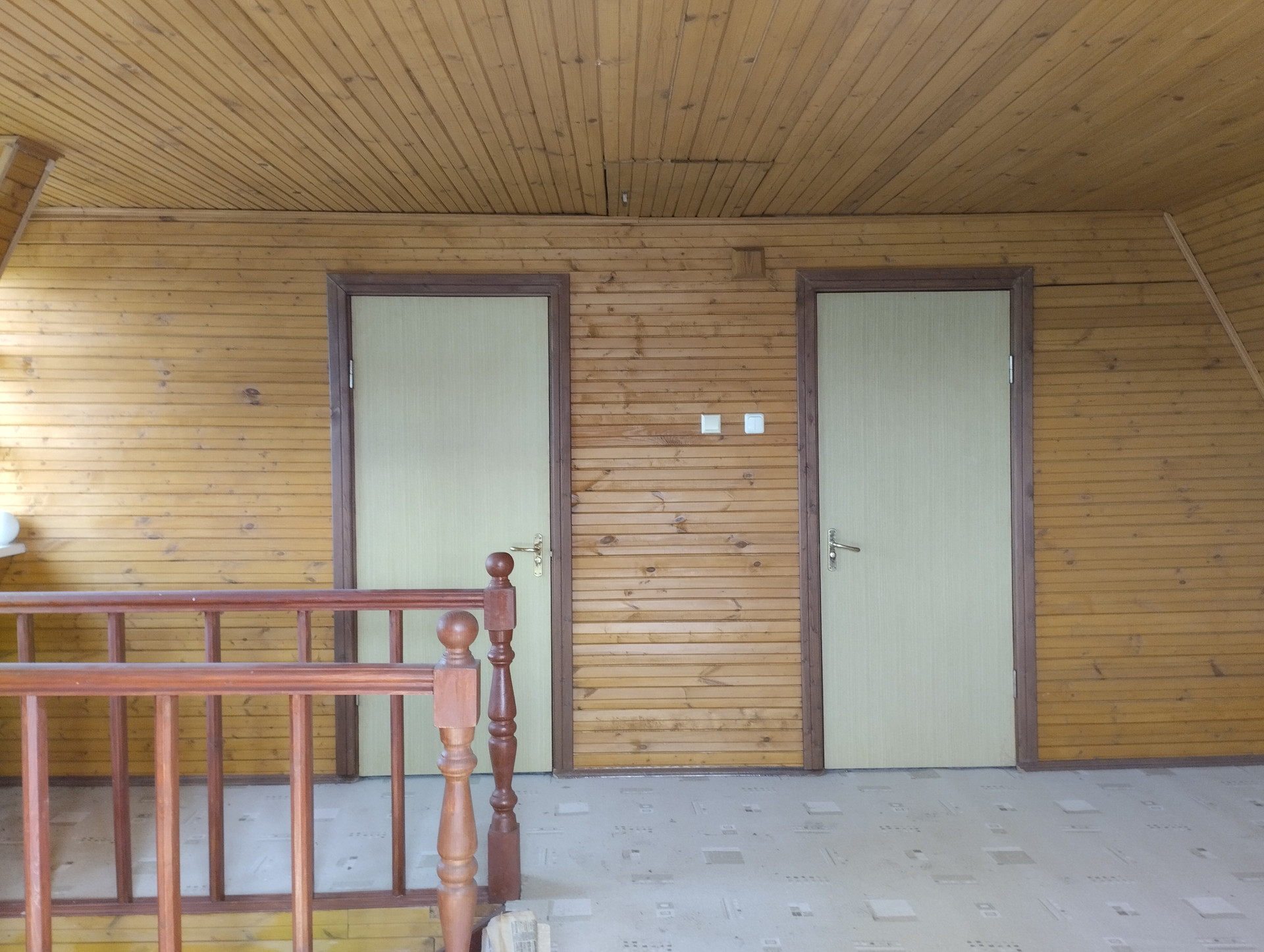На втором этаже: большой холл, две спальни, чердак.