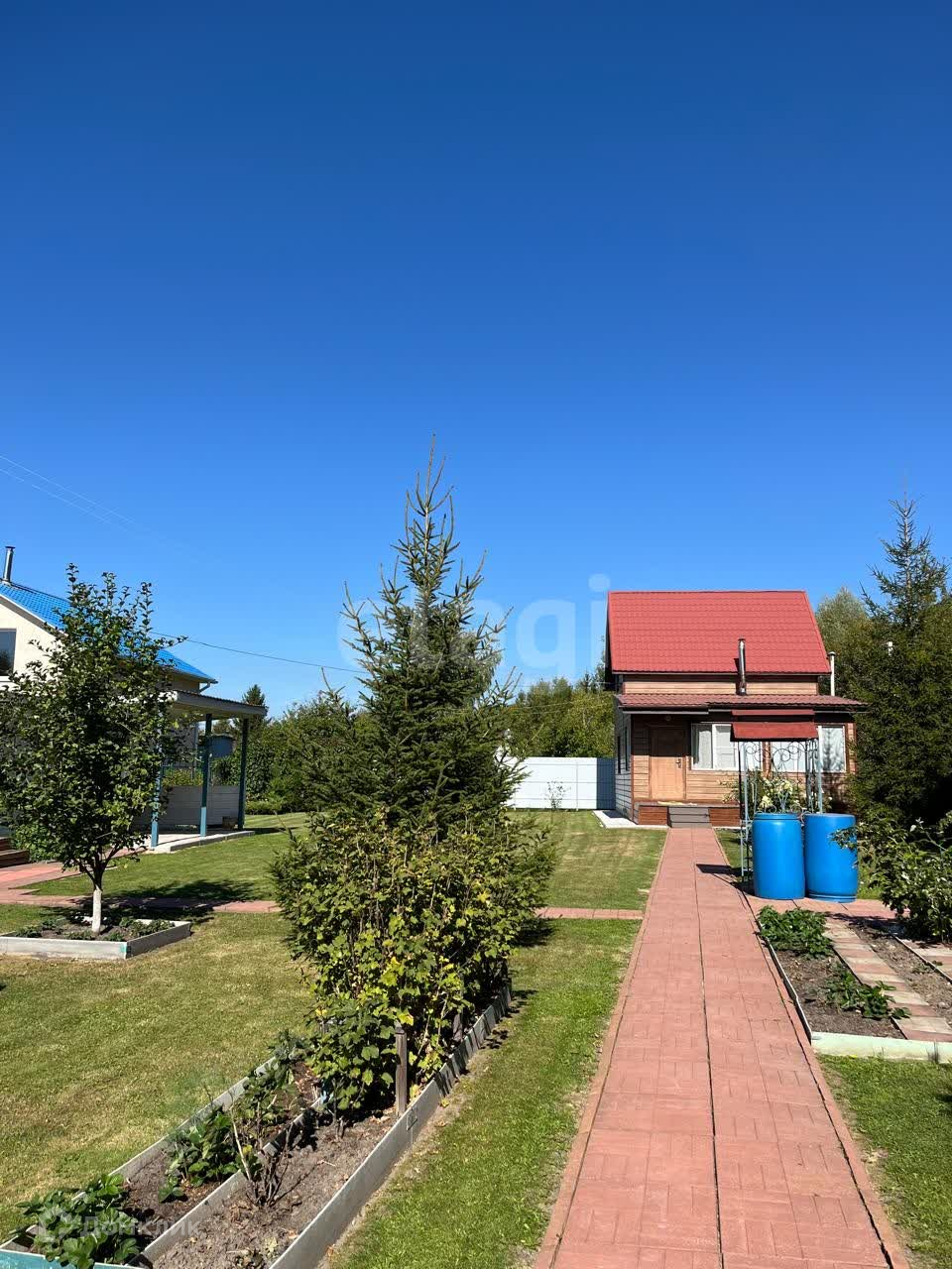 Участок огорожен по периметру, ровный и сухой, что создает идеальные условия для проживания. На участке высажены плодовые деревья и кусты, которые радуют глаз и обеспечивают свежие фрукты и ягоды.