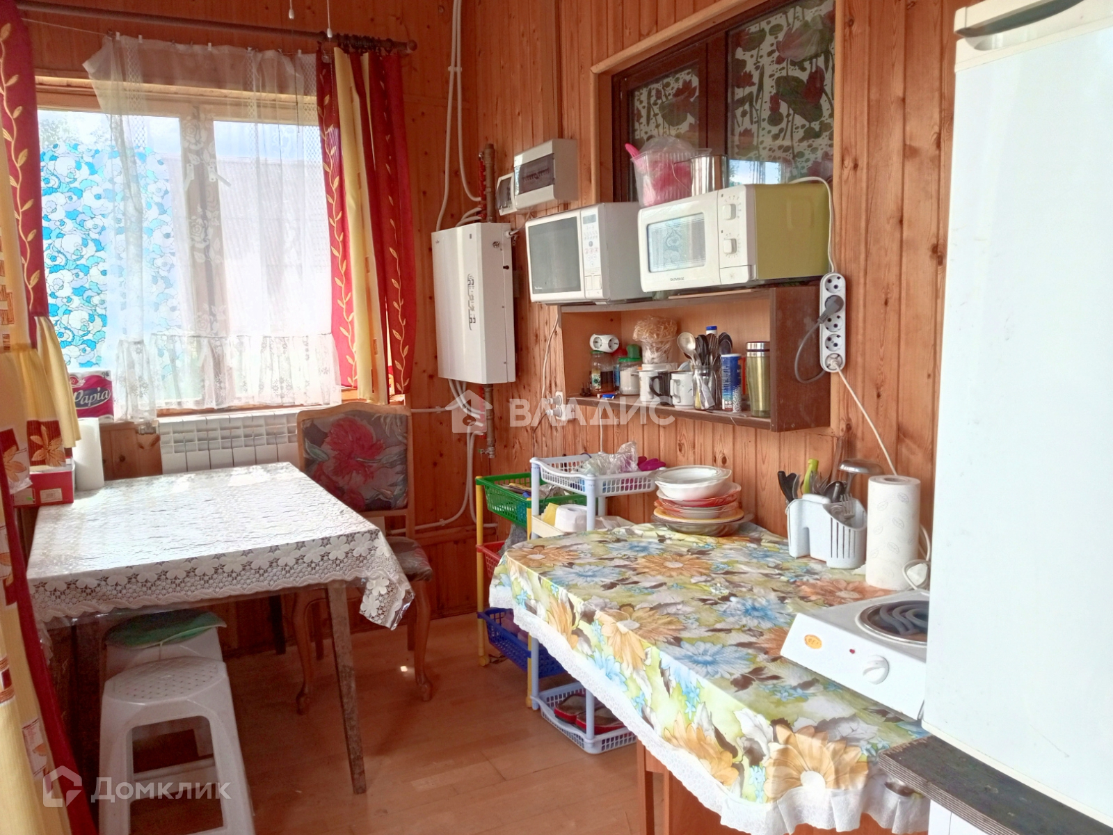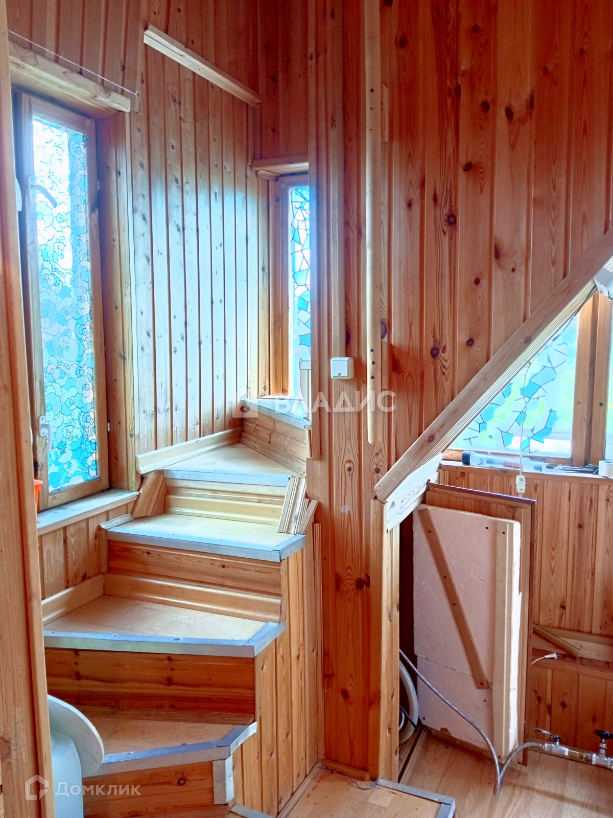 Основной дом 2 этажа: стены - сруб 20-35 см, снаружи обит виниловым сайдингом. Крыша -мeталочерeпица, окна металопластиковые и деревянные. Фундамент ленточный, вода в доме, насос из собственного колодца глубина 7 метров. Горячая вода через водонагреватель. Два санузла. Канализация - септик. Система отопления– двухступенчатый электрический котел, радиаторы, незамерзающий теплоноситель. Весь дом внутри обит евро вагонкой. Деревянная лестница на второй этаж.