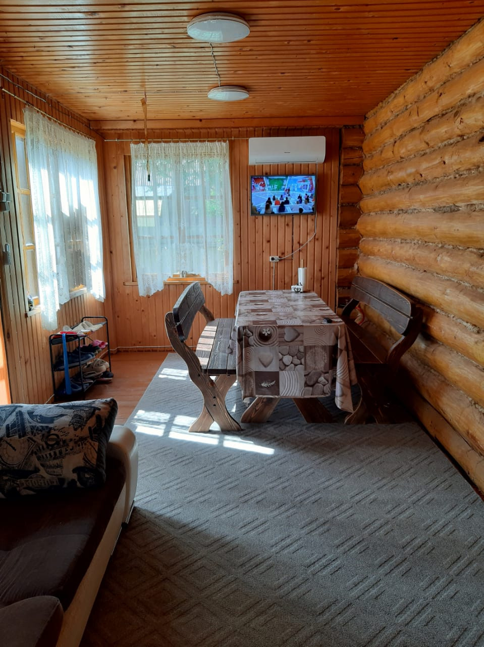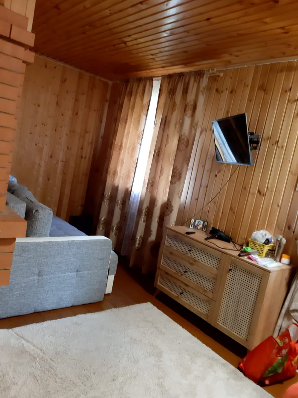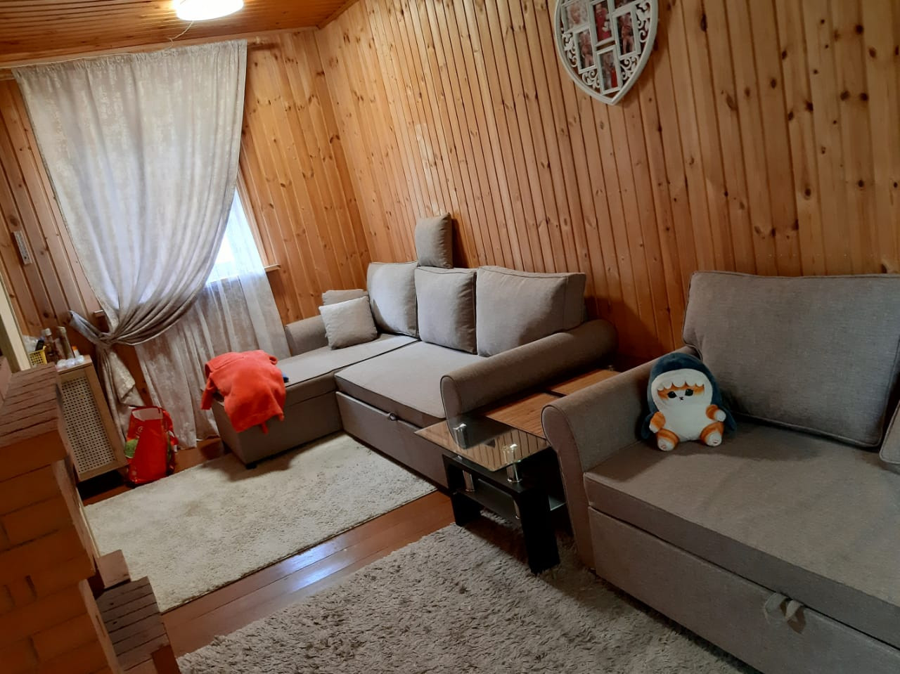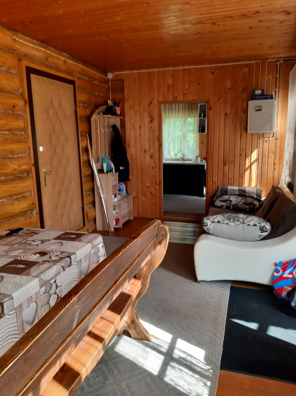 Уютный компактный 2-х этажный домик по Минскому шоссе( есть платная дорога,дорога расширяется) с печь/камином.Дом из бревна,а мансарда и кухня из бруса . на 1м этаже кухня и столовая,большая комната с камином,на 2м---2 спальни.мебель,холодильник.диваны 5шт (1. 5 года как приобрели), кухня, холодильник,обеденный стол/табуреты,прихожая, столы и лавки дубовые в столовой и бане(2 набора), кондиционер, вода с подогревом из скважины подведена на кухню и баню;гараж с погребом. В бане---раковина для умывания,стиральная машина автомат(год как приобретена),котел,бойлер,отопление с радиаторами,печь,лавки для парилки. СНТ возле леса, грибов много. подъезд асфальтирован. ворота на пульте. охрана. Сад-- деревья сливы, яблони,вишня, боярышник;, кусты смородины, клубника,малина,ежевика. Сосны, ели, березы, рябина, сирень,розы. Прекрасное место для отдыха и проживания!Рай для семьи и гостей.земля -21 сотка(2 с пареных участка) есть место и для садоводства,и для отдыха.оставляем всЁ. есть батут и качели.