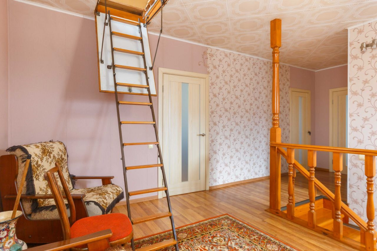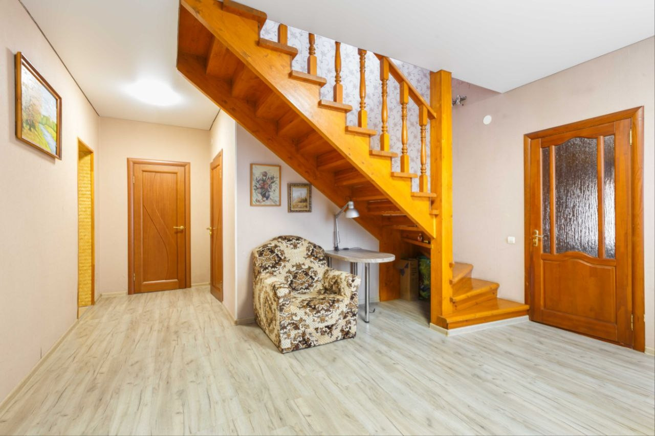 ✔️На второй этаж ведет очень удобная лестница из массива