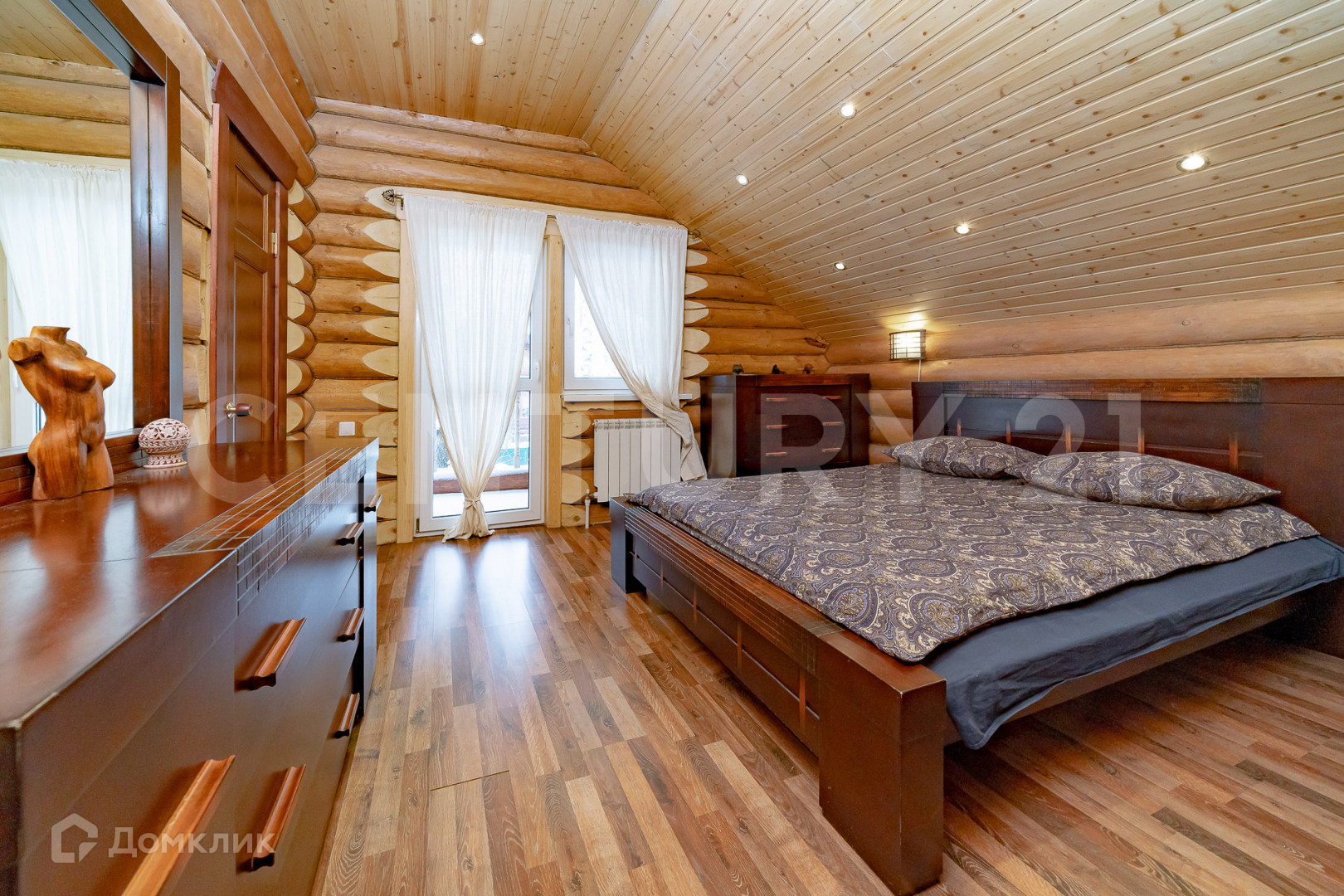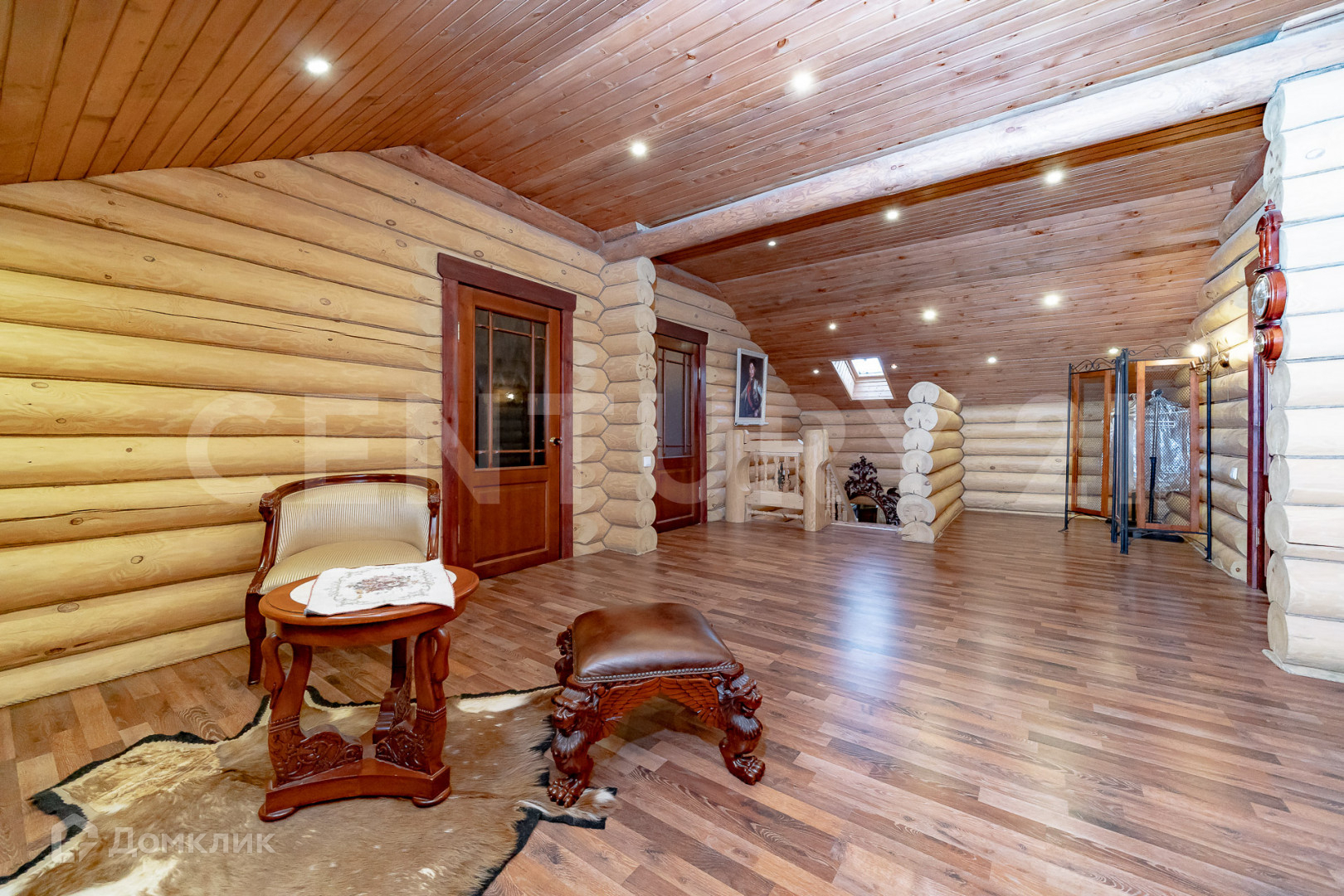 В доме выполнен качественный ремонт. Потолки подвесные из лиственницы и кедра. Лестница на второй этаж выполнена из бревна сосны. Мебель из ценных пород дерева, в основном красное (эксклюзивная, царская реплика, что придает особую атмосферу и уют).