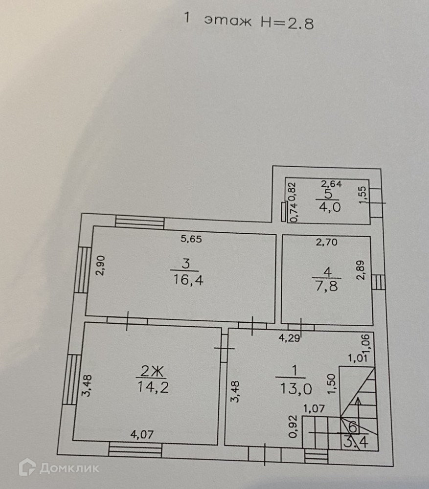 - Кухня-гостиная 16,4 кв.м, зал 14,2, с/у совмещён 7,8 кв.м., топочная 4 кв.м