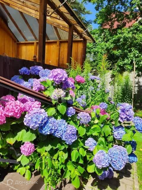 На огороженном забором из профнастила, на участке расположен цветущий сад плодовых деревьев и декоративных кустарников: грецкий орех, яблони, груша, смородина, жимолость, клубника.