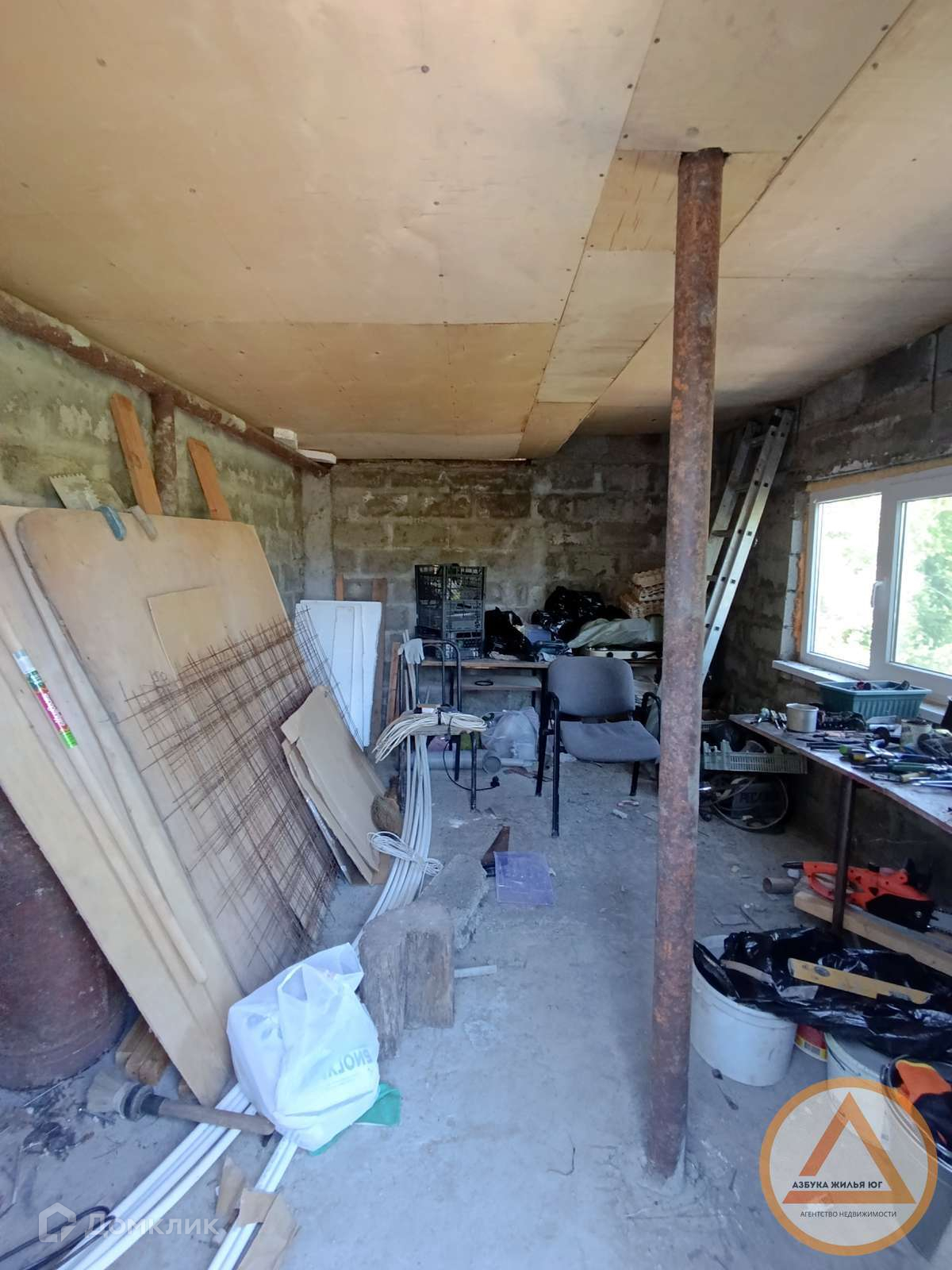 Дом сделан из бетона, состоит из двух этажей, первый этаж: подсобное помещение,кухня,банька,душ.Второй этаж из бруса :две жилые комнаты( сан.узел).