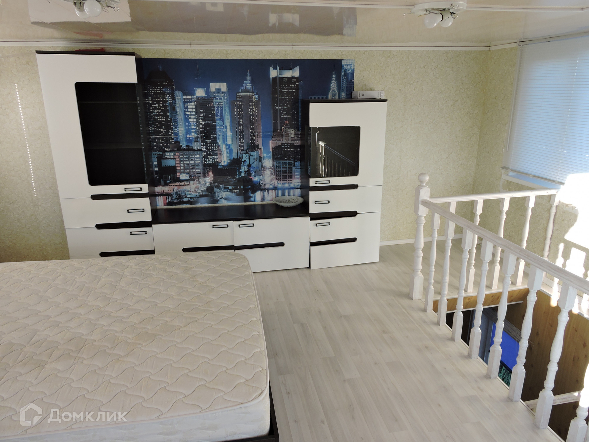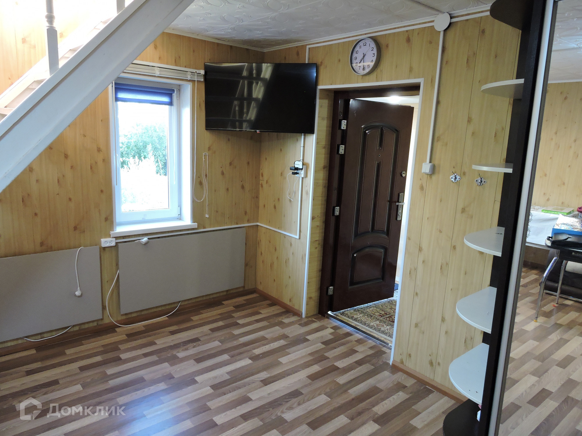 На первом этаже большая светлая комната, кухня, санузел, прихожая.