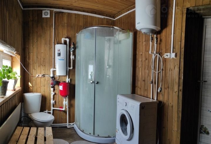 Все удобства дома: туалет, душевая комната, сауна. Электричество, вода – скважина и колодец (вода заведена в дом, и в баню), электрокотел. Радиаторы отопления установлены на 1 этаже.  Потолок второго этажа утеплен. Канализация – шамбо.