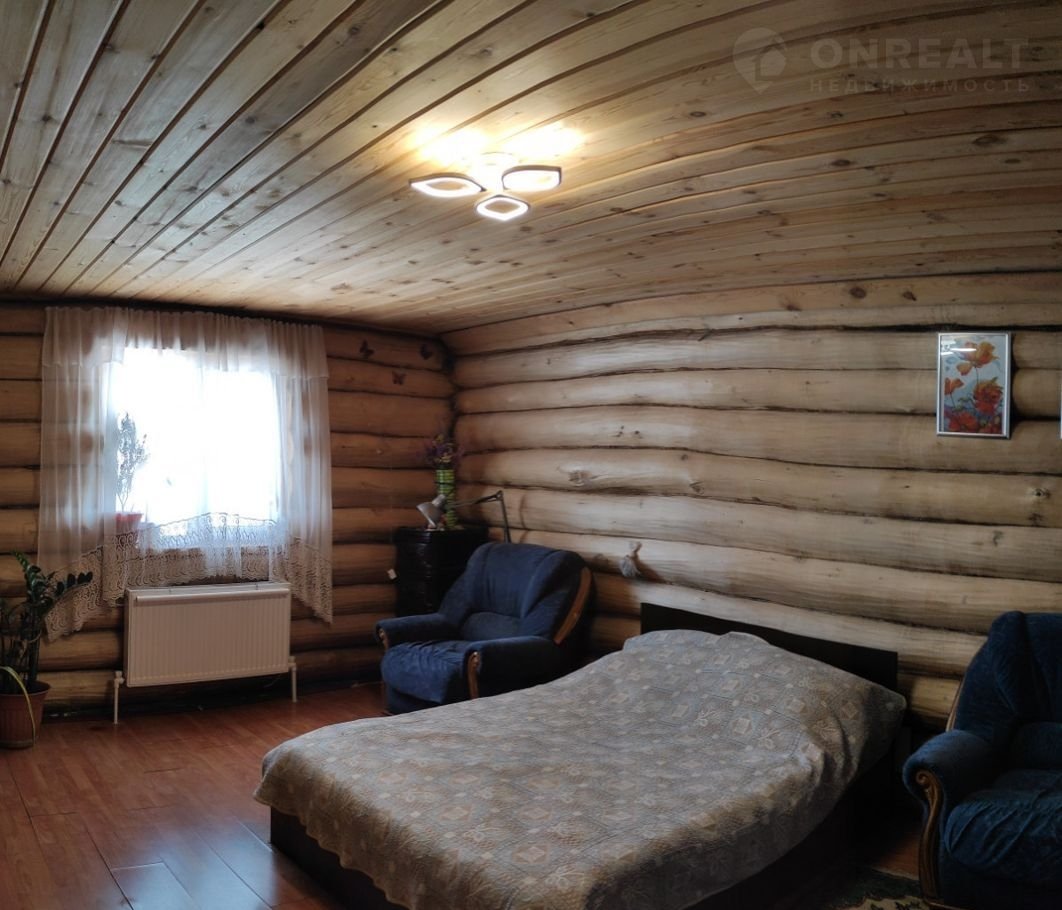 Дом двухэтажный – обжитой. Материал - сруб, липа. Утеплен минватой, обшит сайдингом. 1 этаж: площадь 96 кв.м (веранда – 16кв.м, фото отсутствует) – кухня -гостиная, спальня, санузел, комната отдыха, сауна.  2 этаж: площадь 40 кв.м свободной планировки, рассчитанна на 2 полноценные комнаты.