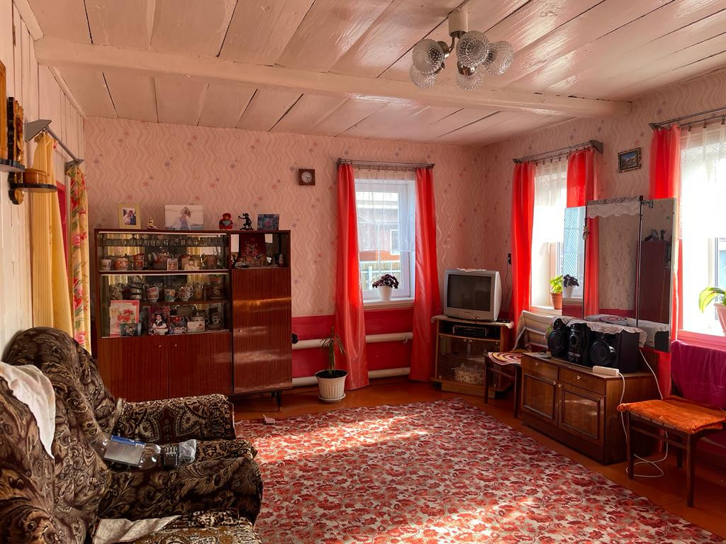 Дом построен из бревна, находится на третьей улице.