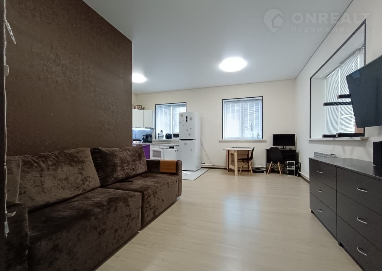 Удобная планировка: огромная кухня гостиная, 2 светлые спальные комнаты, гардероб, прихожая и совмещенная ванная комната.