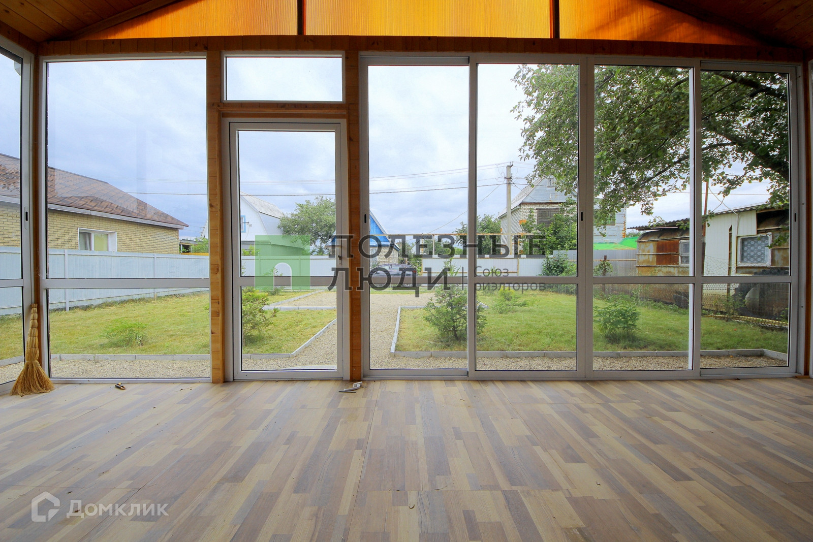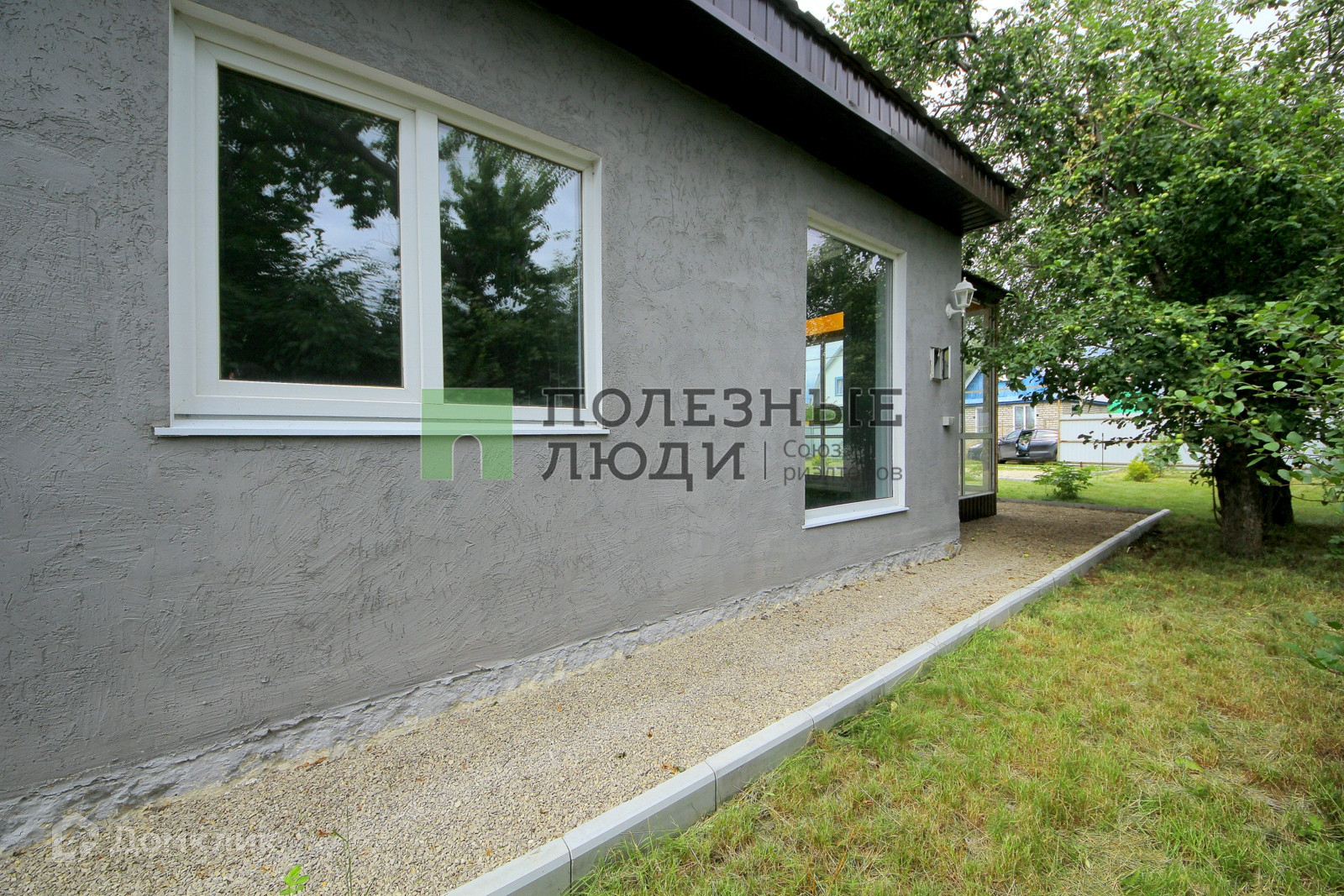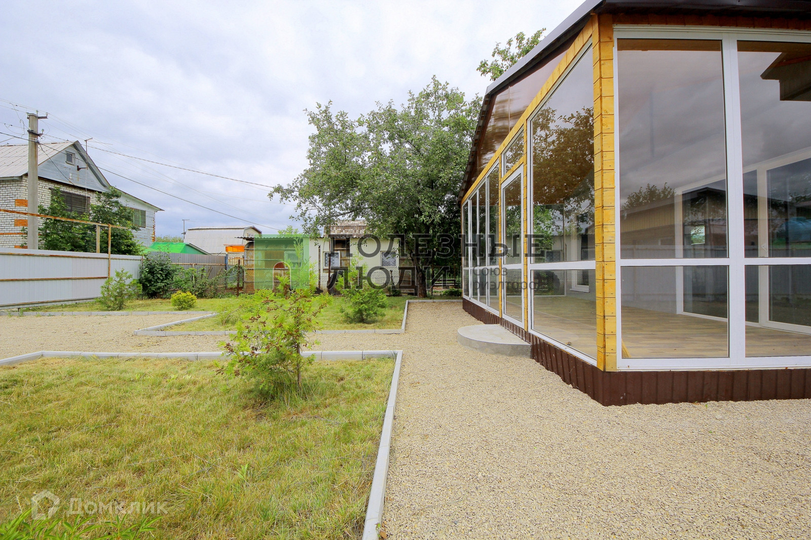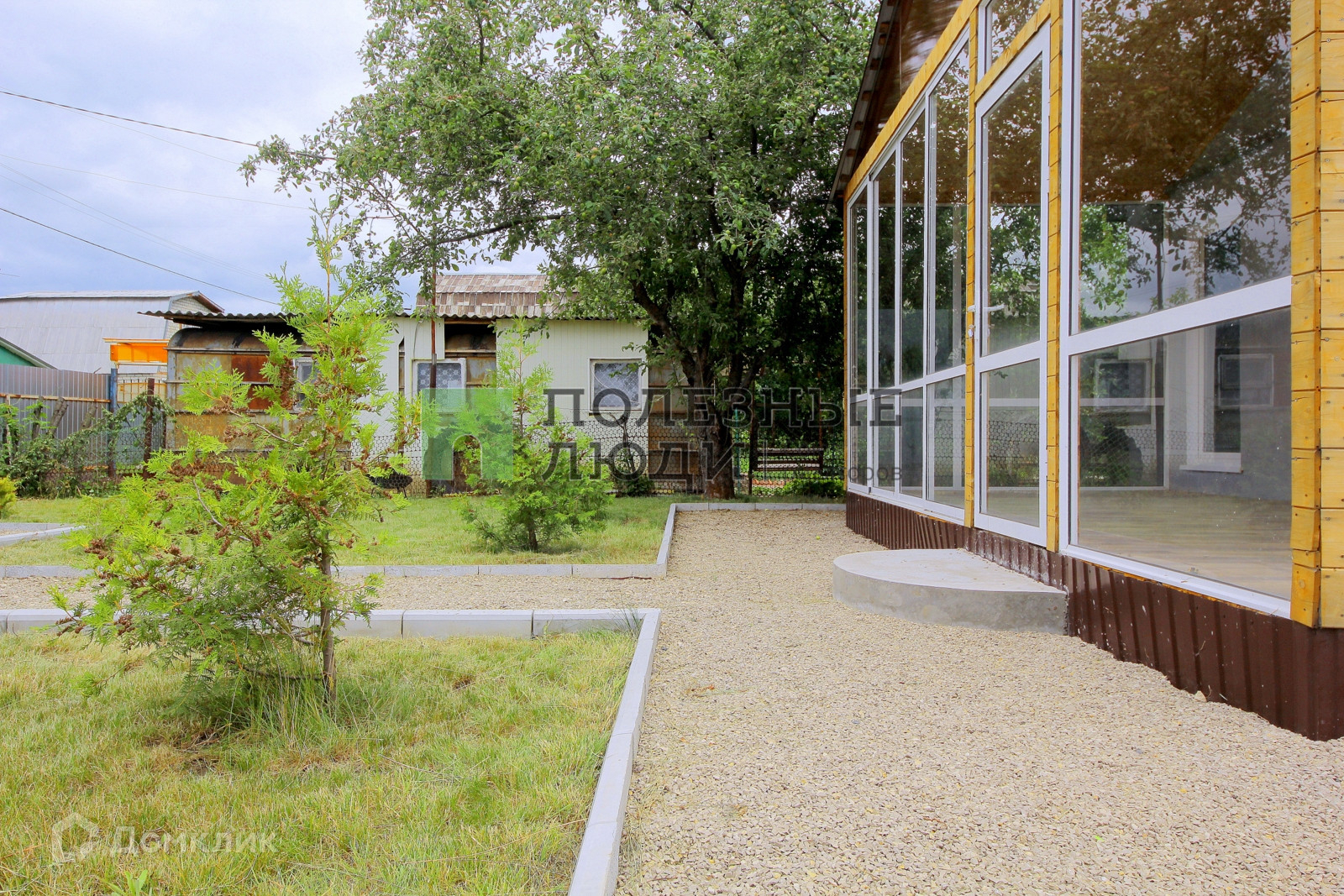 Дом обставлен стильными обоями на стенах и качественным ламинатом на полу. В нем также имеется туалет с душем и раковиной для вашего комфорта. Участок имеет ровную прямоугольную форму, покрыт газоном и украшен хвойными деревьями и плодовыми кустарниками. На территории есть забор с воротами, обеспечивающий уединение и безопасность.