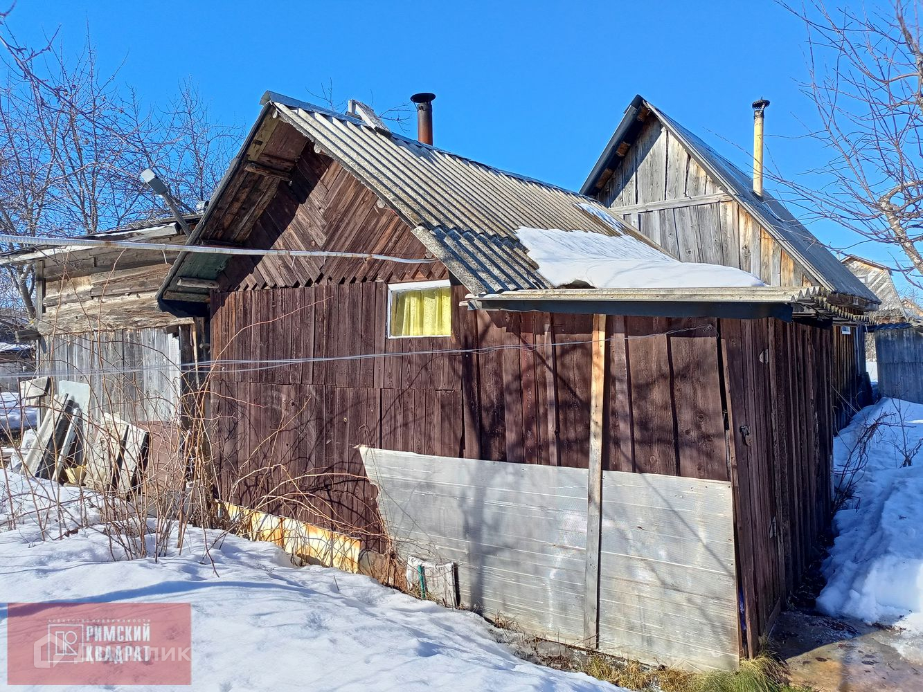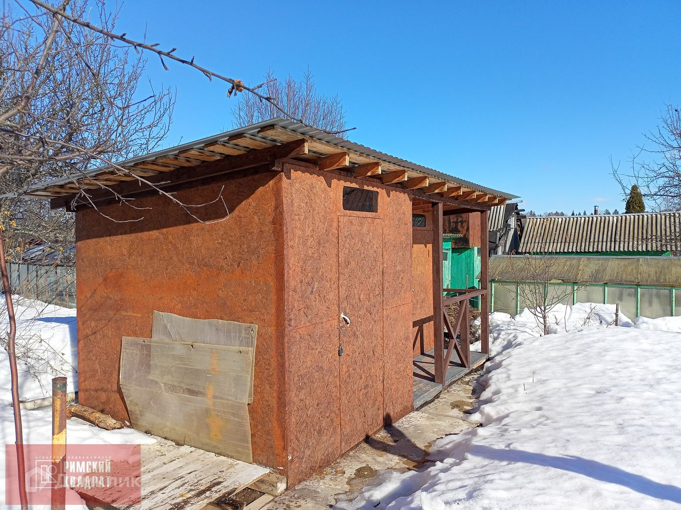 На участке имеется баня с погребом, кладовая для инвентаря, туалет. Посажены 2 яблони, груша, малина, смородина, клубника.