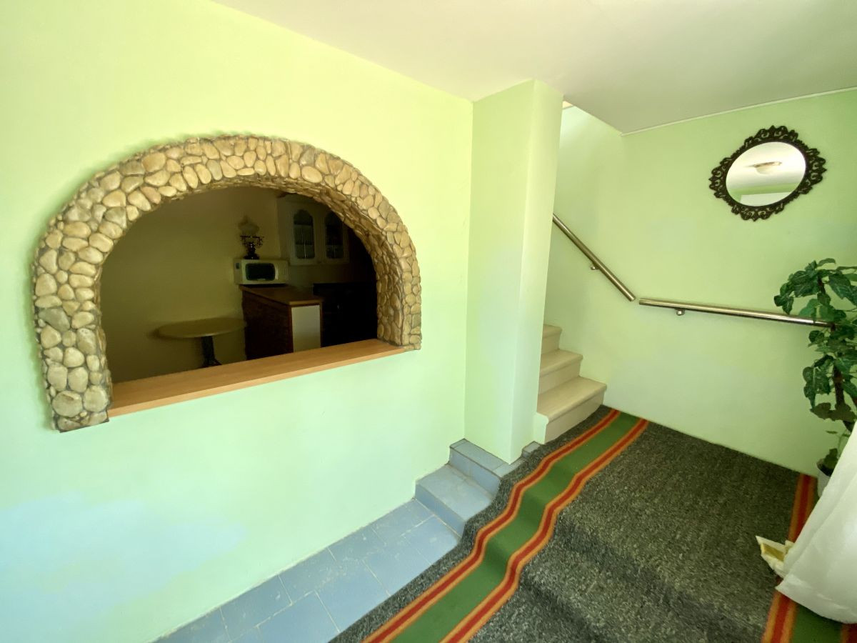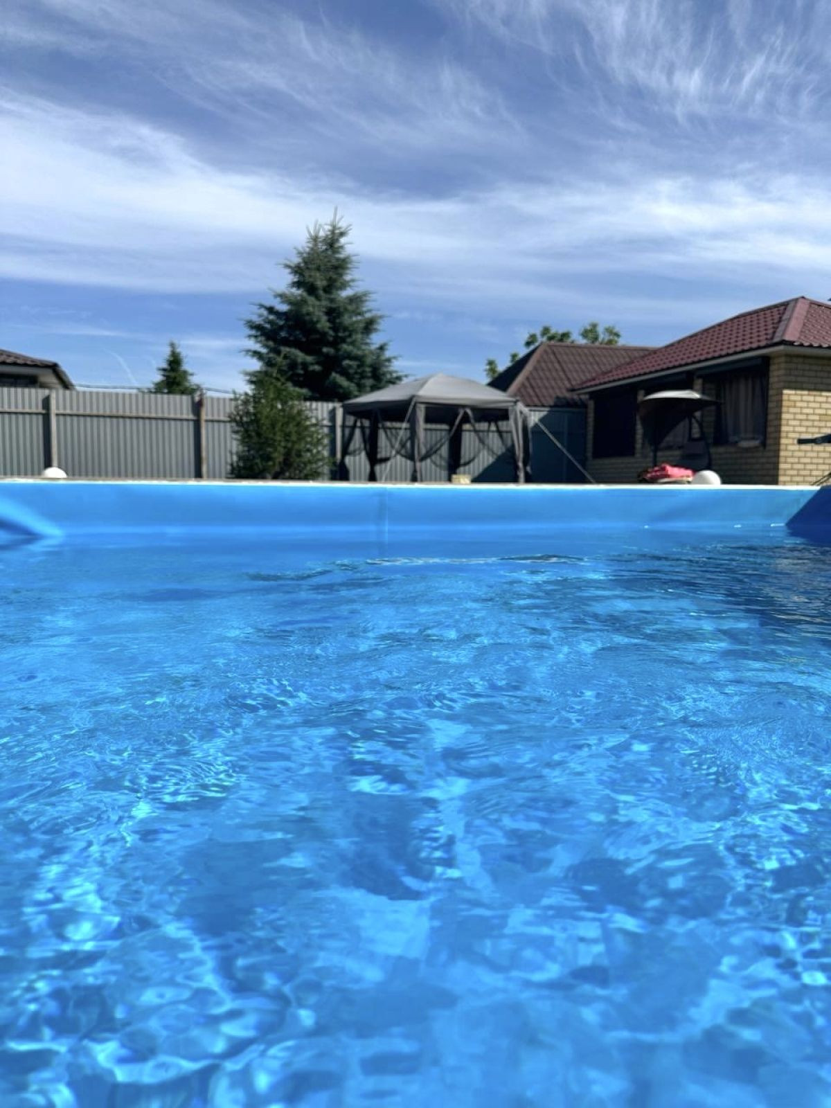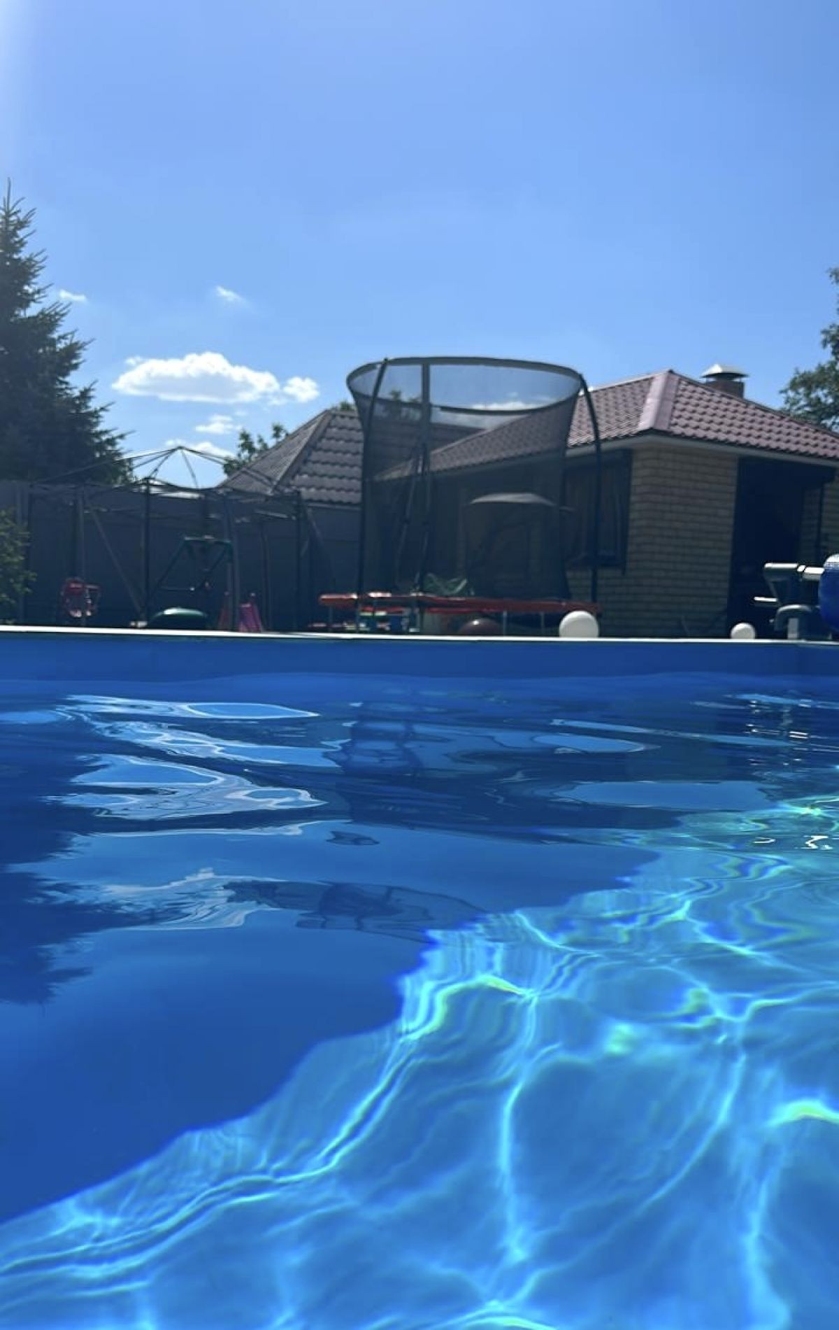 Просторный двухэтажный кирпичный дом, ухоженная территория. Ровный земельный участок размером 5,91 соток, на территории хоз. блок с баней и душевой, бассейн с подогревом, отдельная летняя кухня.