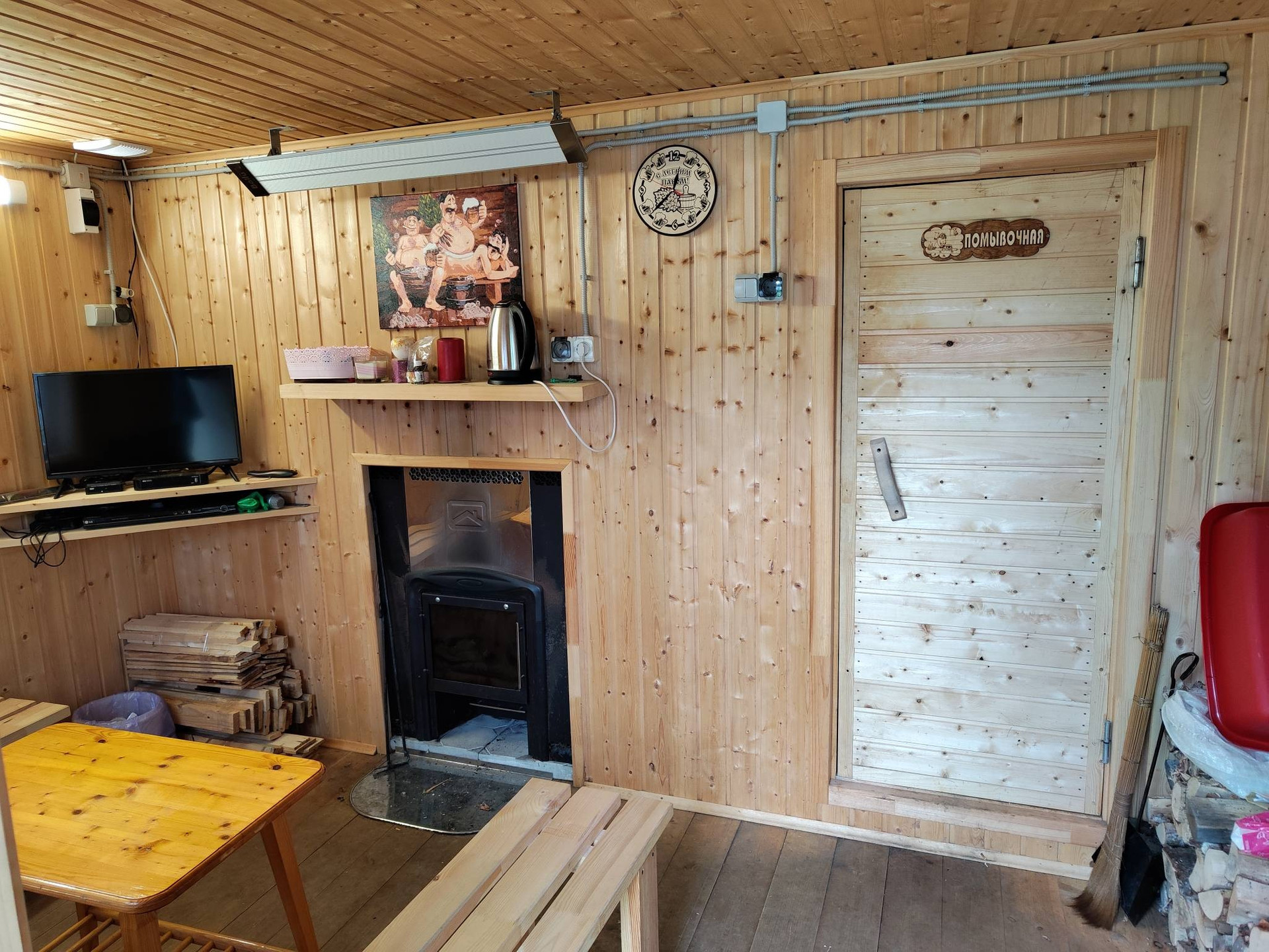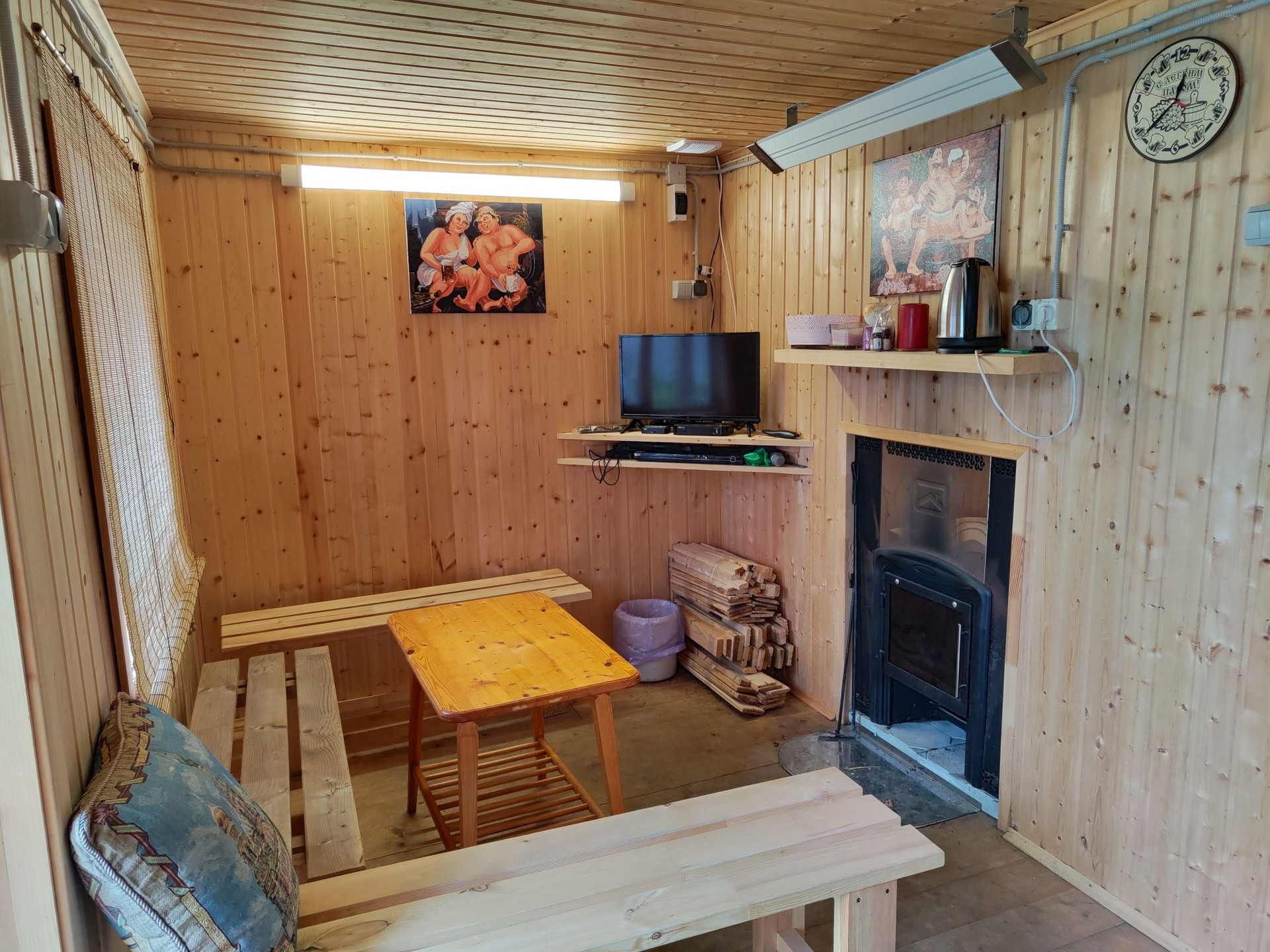 Баня 4х4, брус. Комната отдыха, помывочная, парилка.