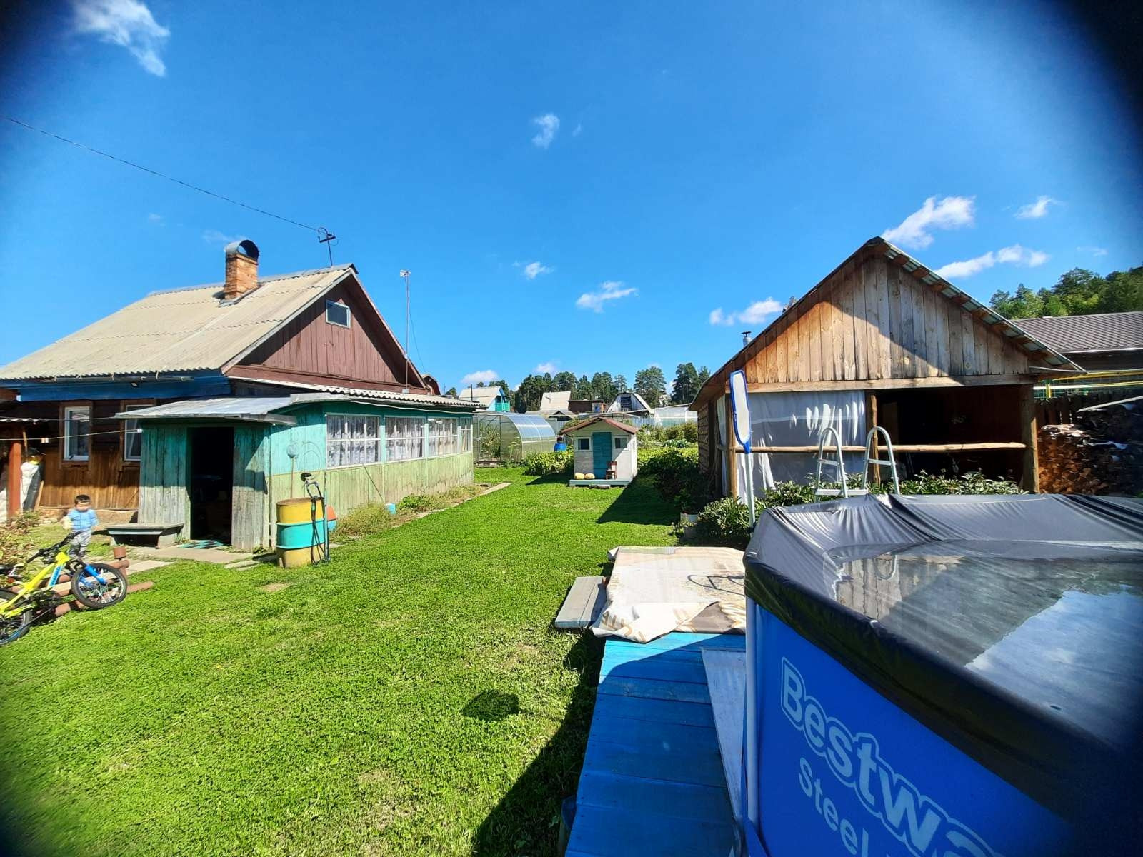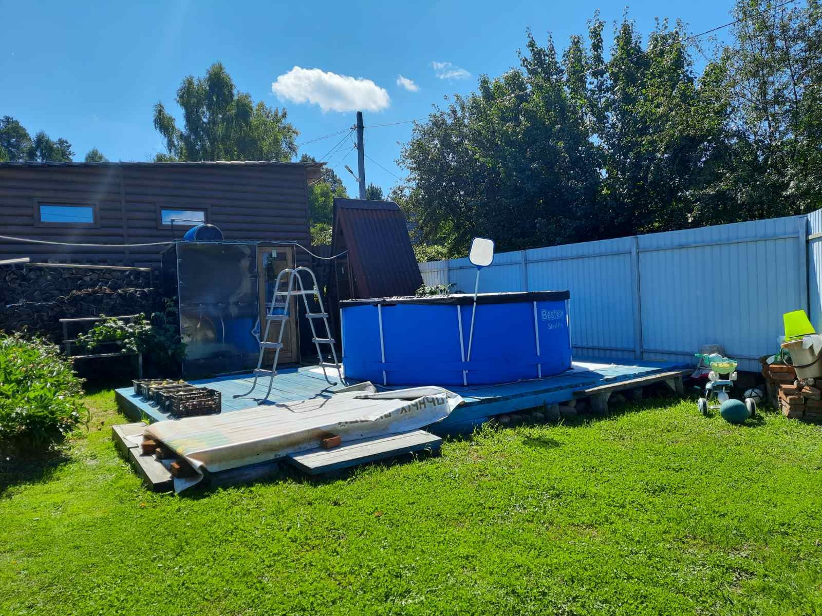На территории стоит дом 34,8 кв.м., летняя кухня 12 кв.м, баня 4×4 с открытой верандой, 1 теплица, летний душ. Дом и баня бревенчатый. В доме стеклопакеты. Хороший забор из металлопрофиля.На участке есть кустарники жимолость, чёрная смородина, малина, красная смородина. Участок разработанный и ухоженный. Дом и земля приватизированы. Есть прописка. На территории снт есть магазин, детская площадка. От города 15 мин езды. Дорога до снт асфальтированная. Оставляем дрова берёза. Снт находится на возвышенности, не затопит.