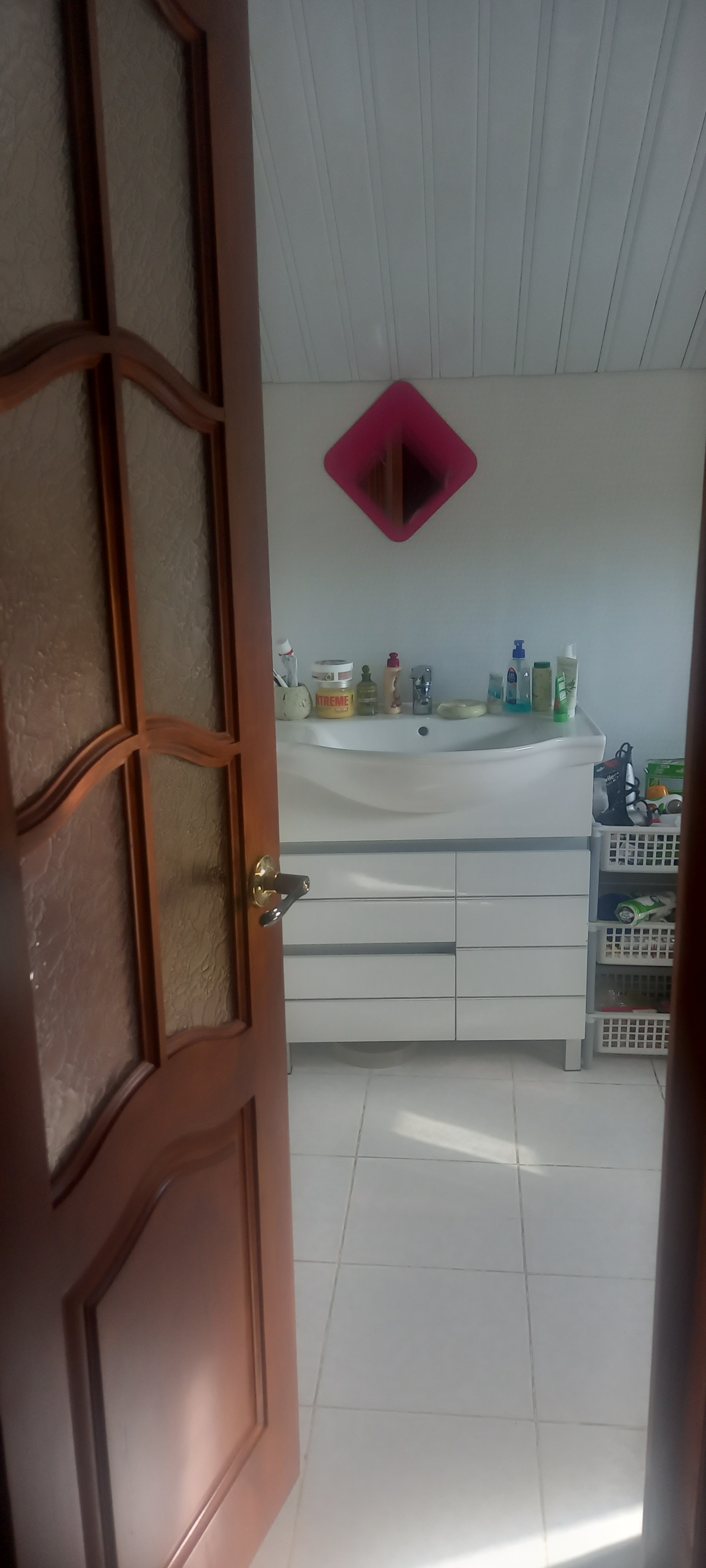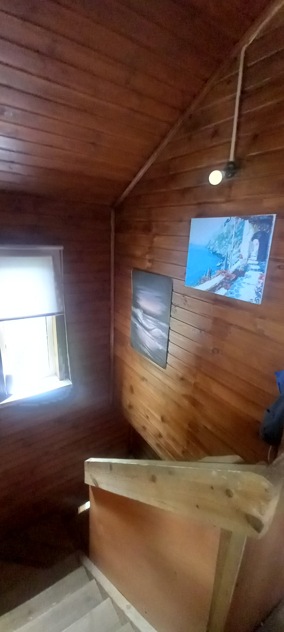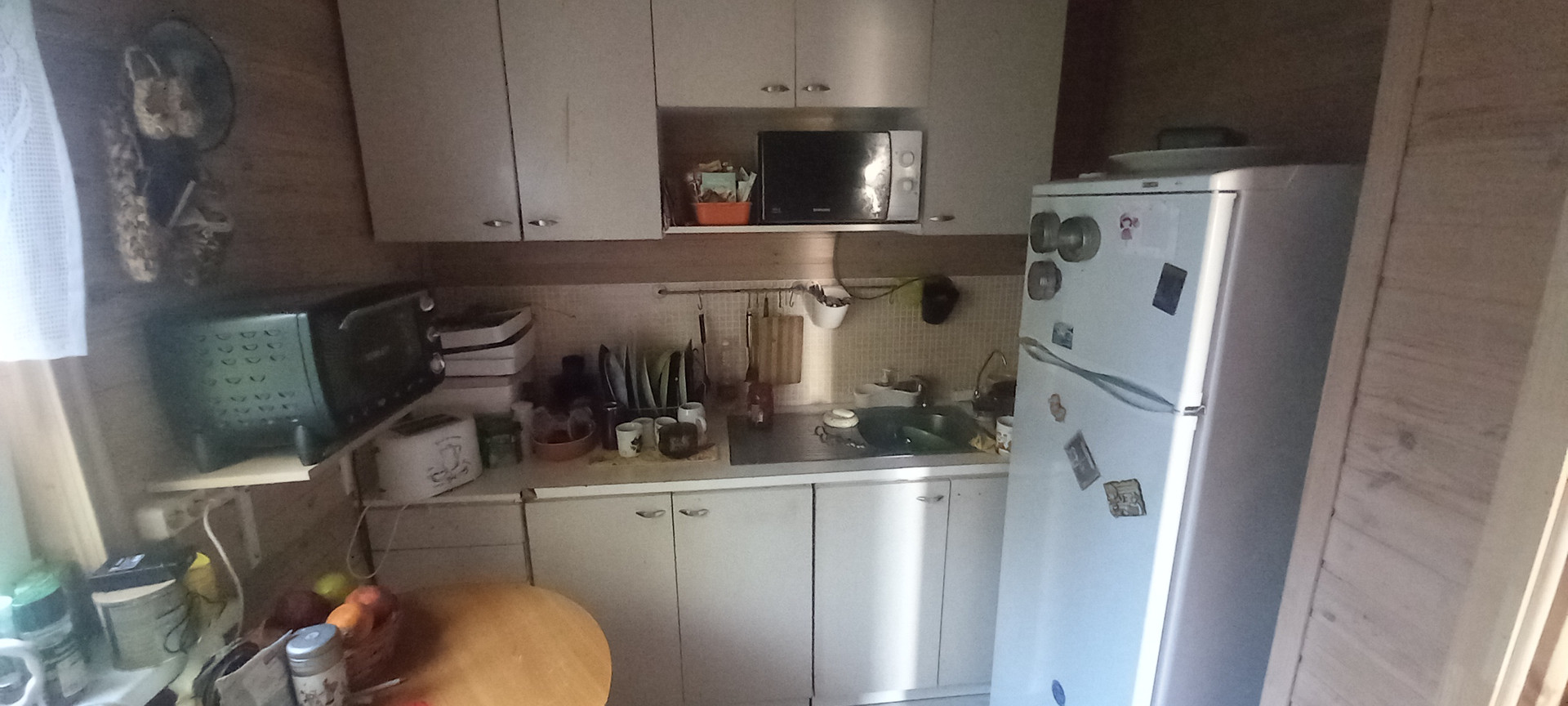 В доме два этажа.На первом размещена котельная с инженерным оборудованием(ввод воды в дом),большая гостинная 20 кв метров,туалети кухня.На втором этаже летний балкон,2 спальни,большая душевая комната с унитазом,раковиной и душевой кабиной и кладовка,оборудованная полками для хранения.