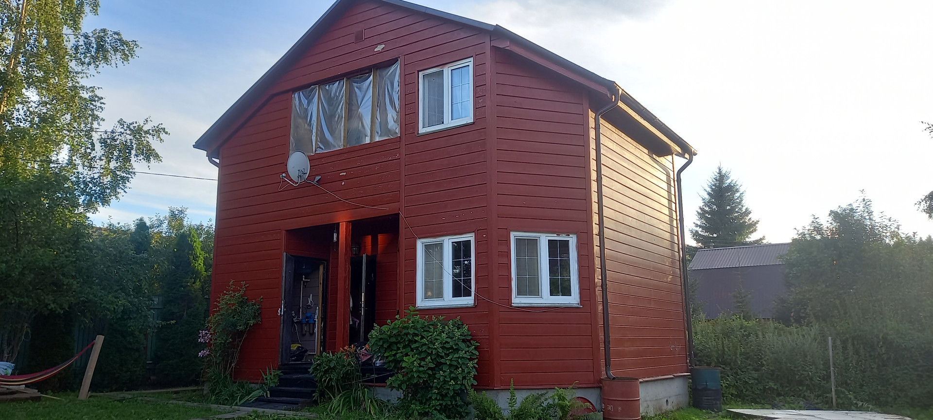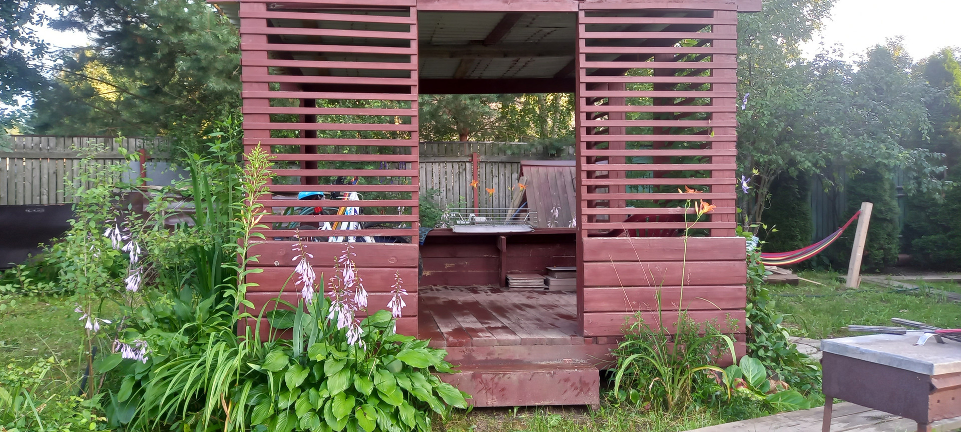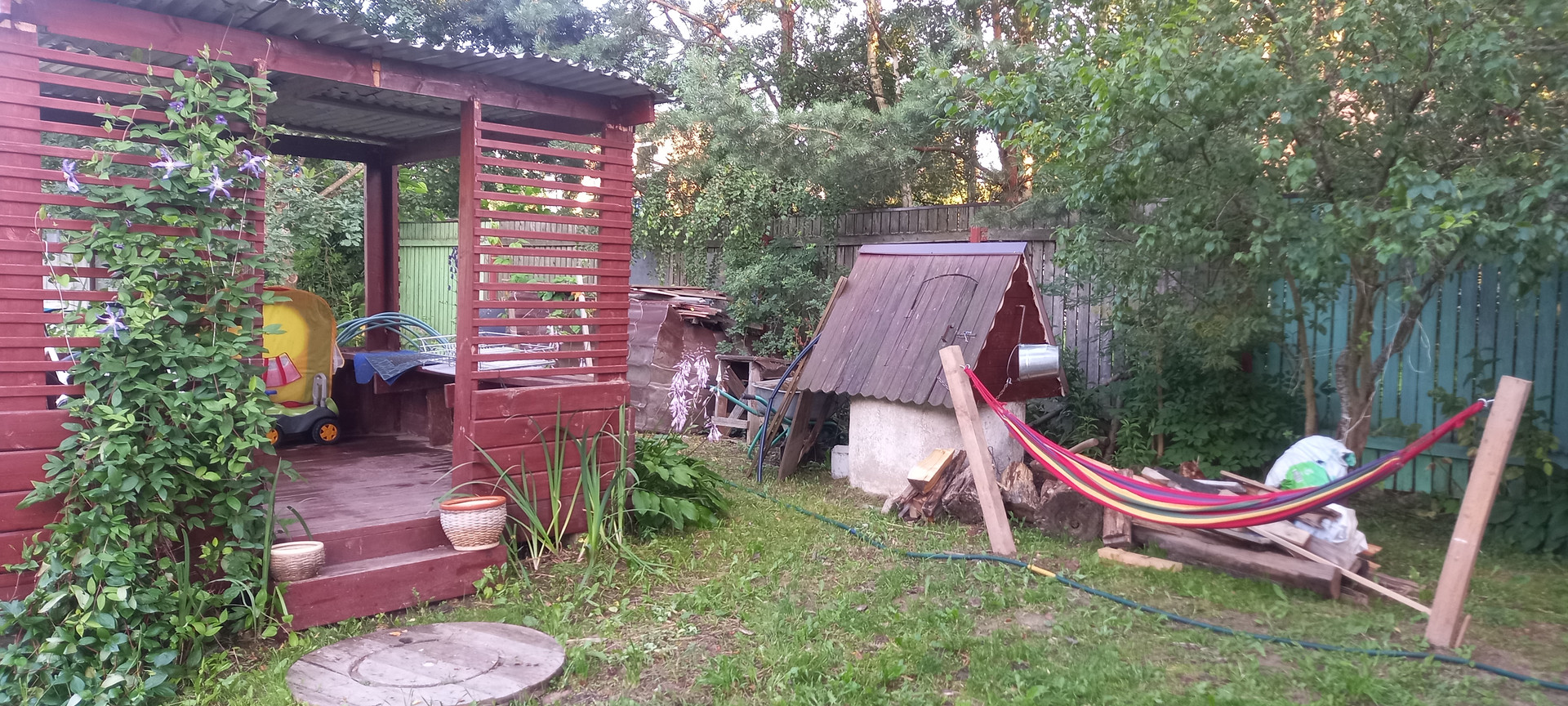 На участке плодовые деревья и кустарники,высокие грядки,хозблок,беседка,мангал,колодец,гамак.