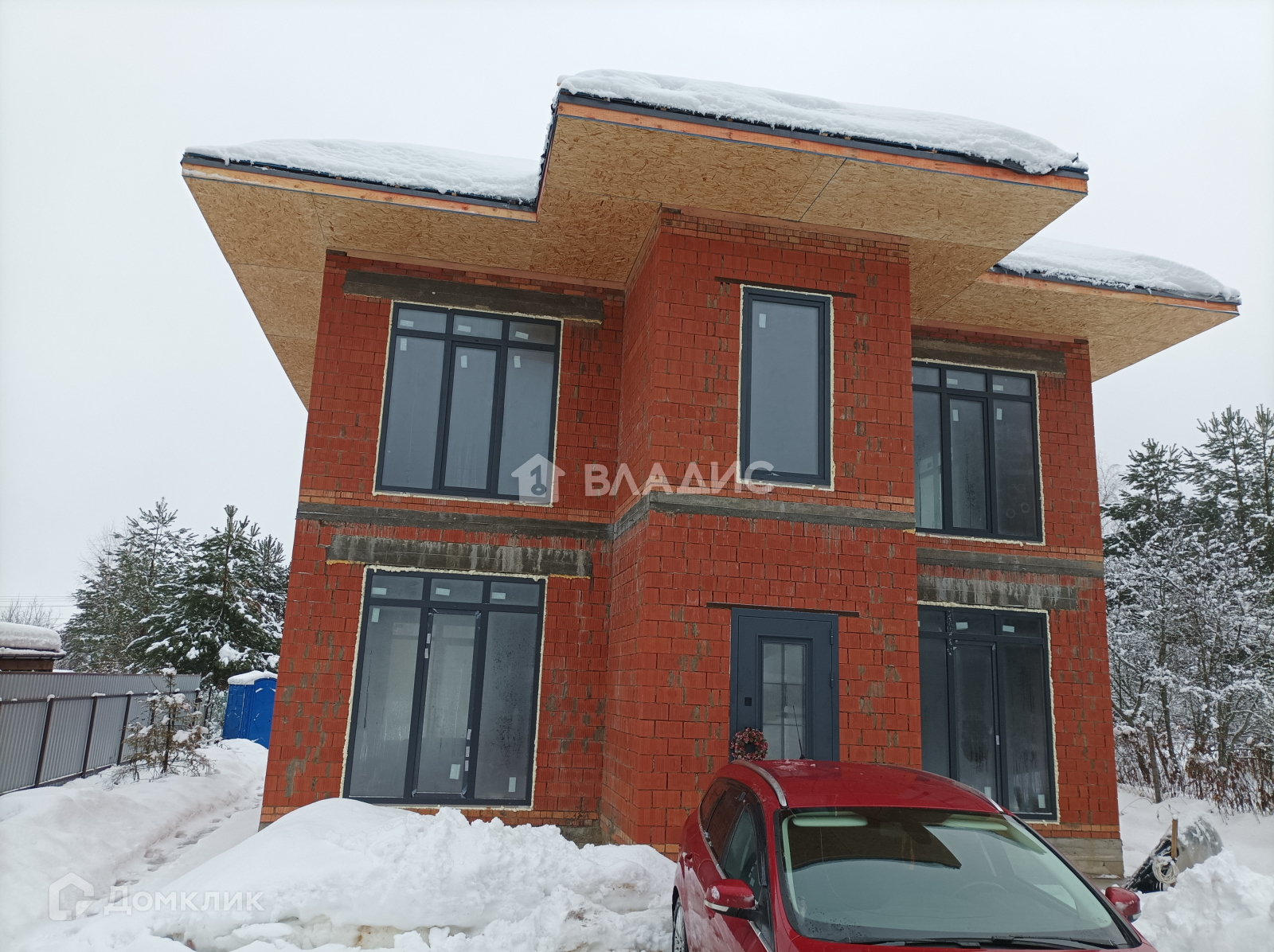Участок ровный и правильной формы, сухой и не отсыпанный, с двух сторон огорожен профлистом, с двух других сторон - сеткой рабицей. Установлены ворота. Участок небольшой, но спланирован таким образом, чтобы сбоку осталось место для хозблока, теплицы и маленькой бани, а перед домом сохранилась парковка на 2-3 машины.