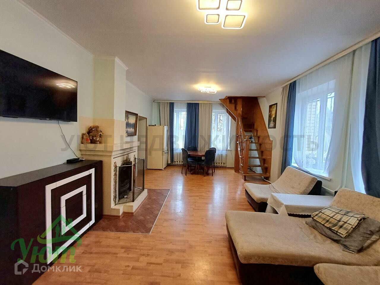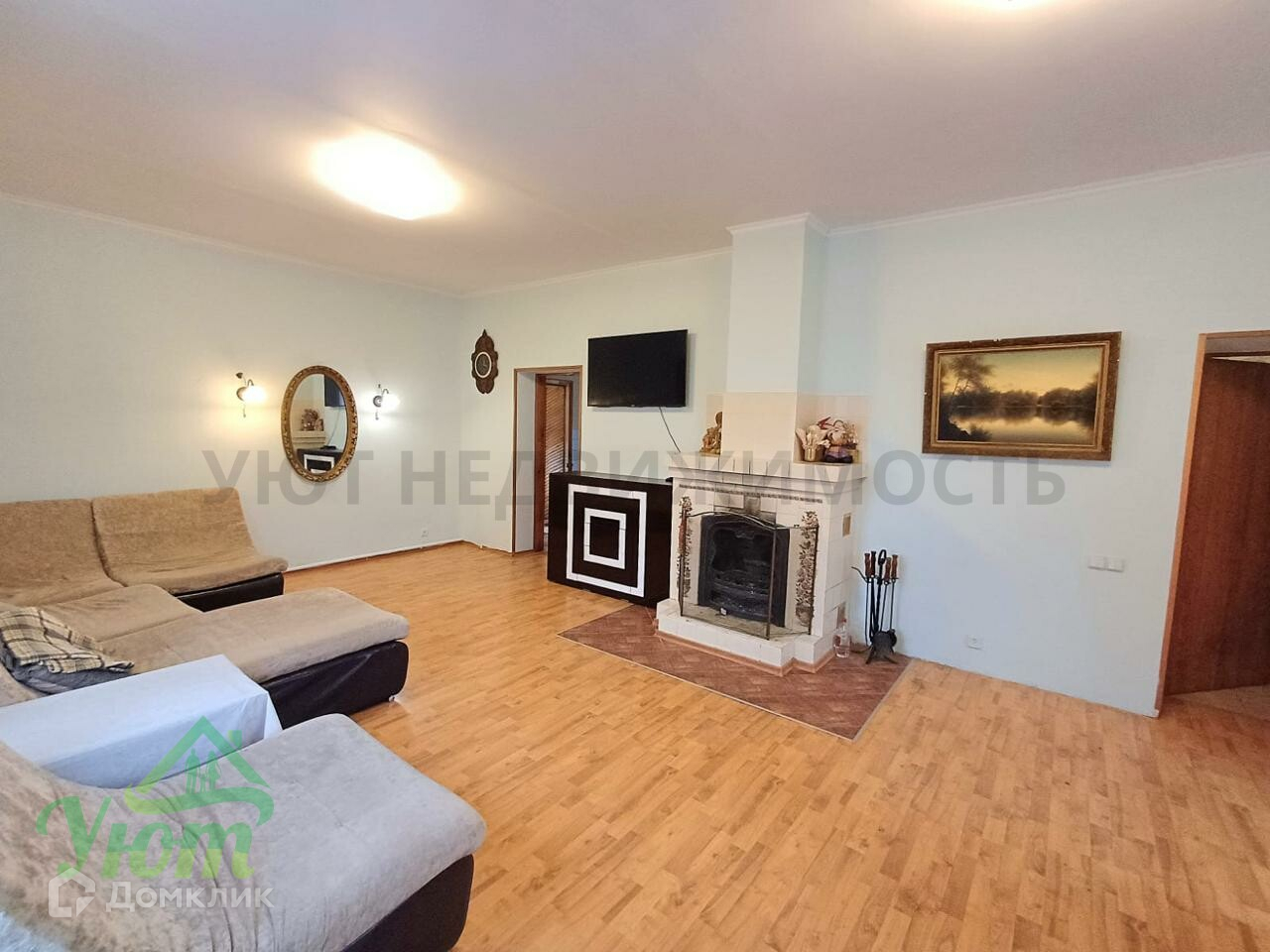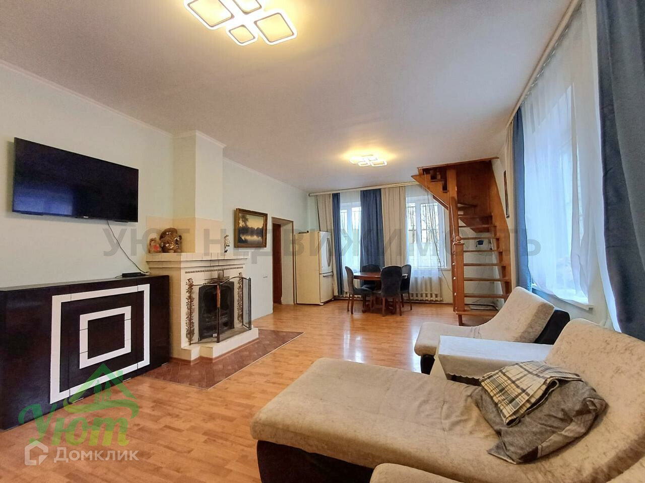 2-й этаж: гостиная с камином, 2 спальные комнаты, застекленная лоджия.