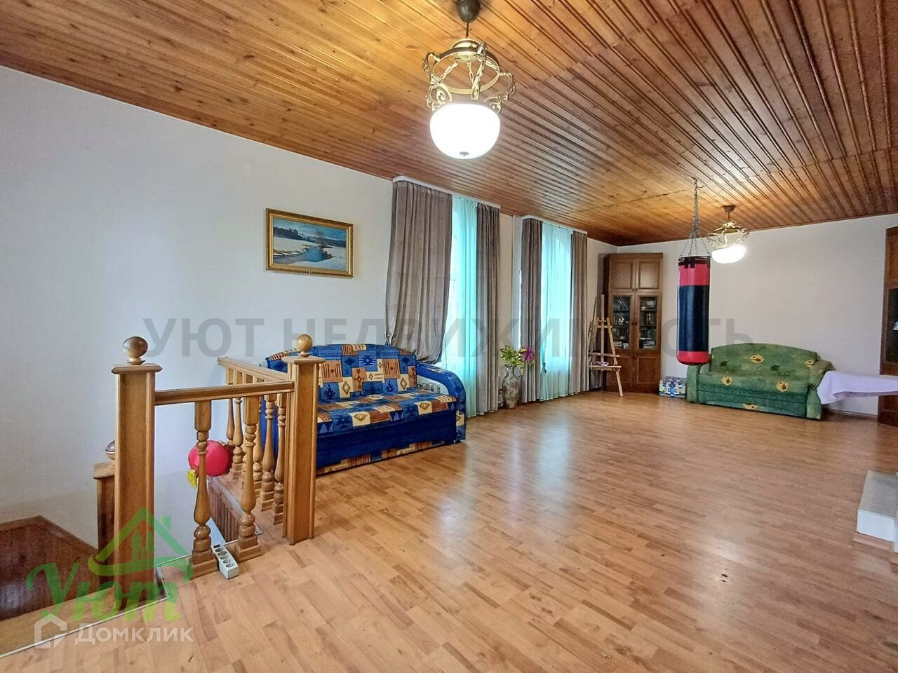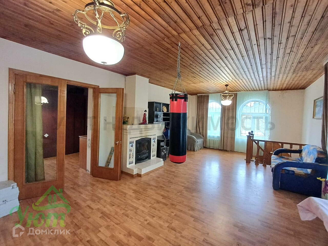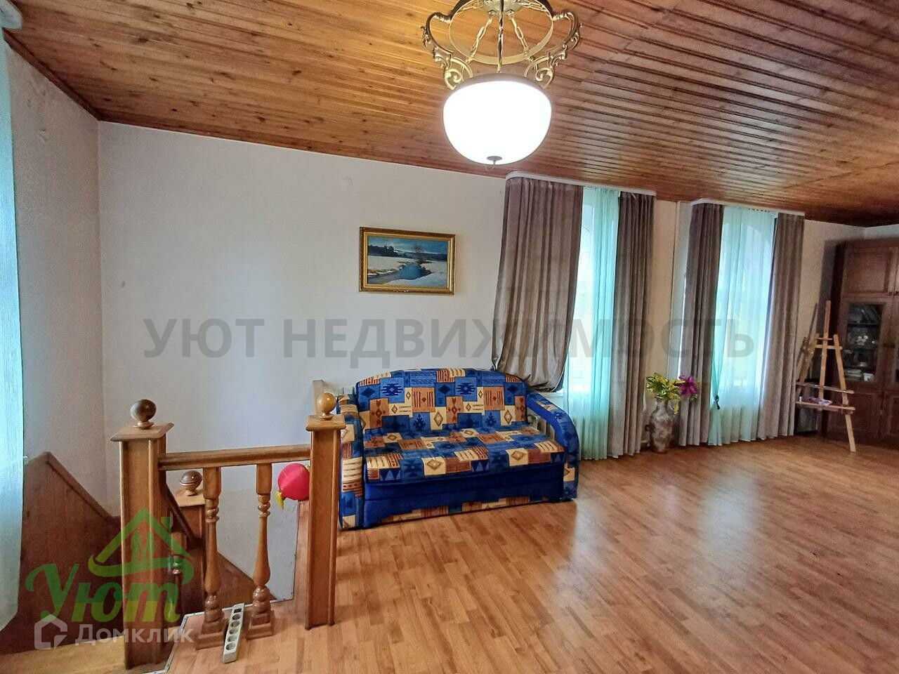2-й этаж: гостиная с камином, 2 спальные комнаты, застекленная лоджия.