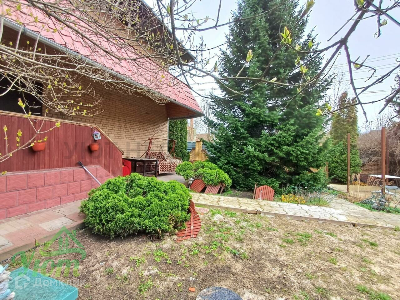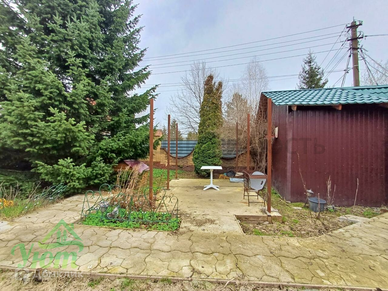 Подготовлена площадка для беседки. Участок ухожен, туи, пихты, садовые деревья.
