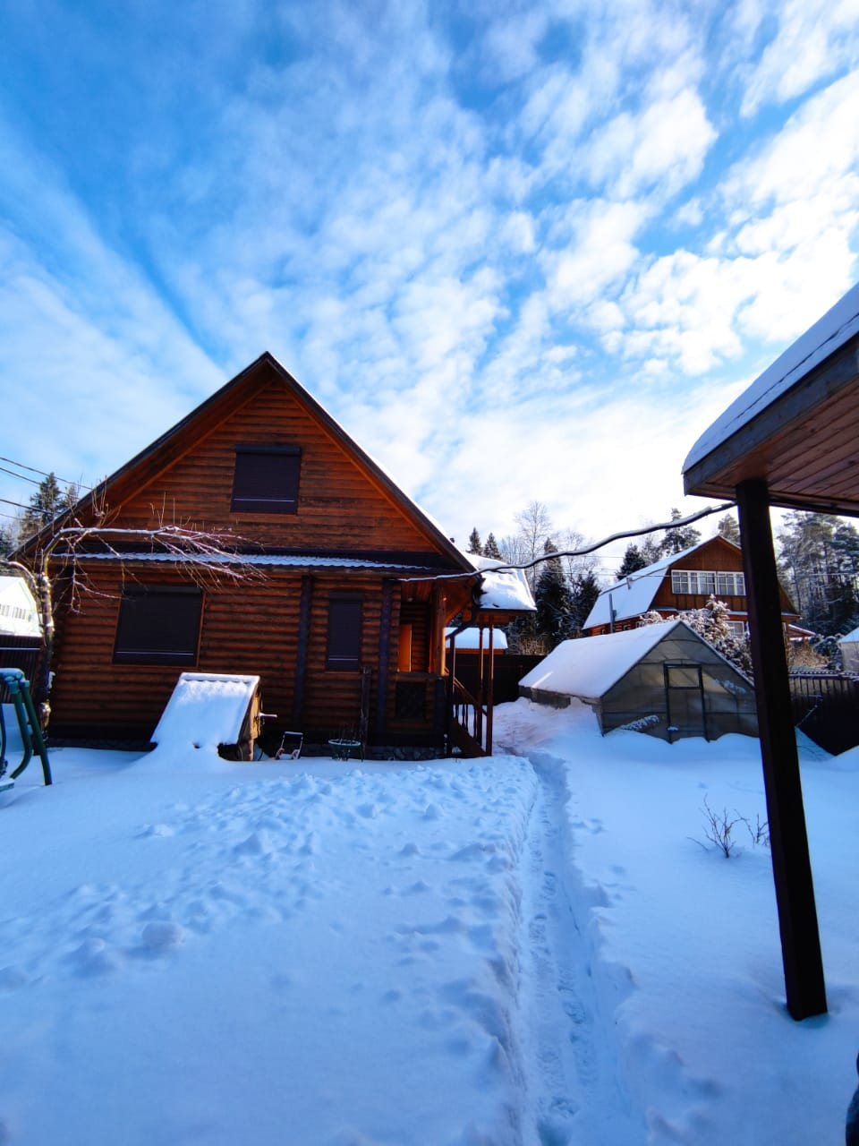 - Дом из оцилиндрованного бревна 2009 года постройки на ленточном фундаменте. Площадь 96,2 кв.м, 2 этажа.