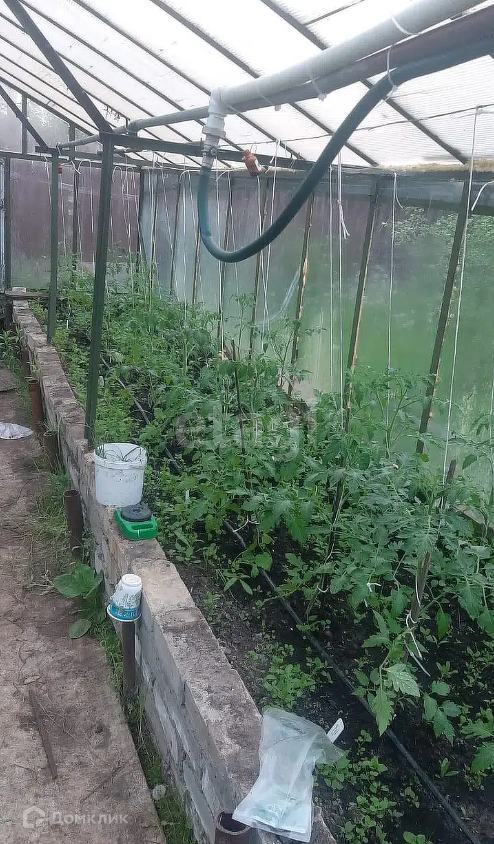 На участке: две теплицы, с подведенной водой из водонапорного бака (вода в баке нагревается солнцем), гараж-ракушка, хоз. блок, беседка, летний душ с подогревом, скважина, туалет летний, установлена бетонная площадка для бассейна.