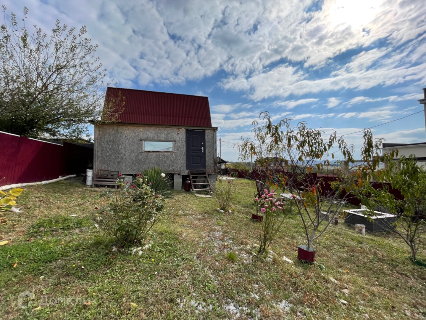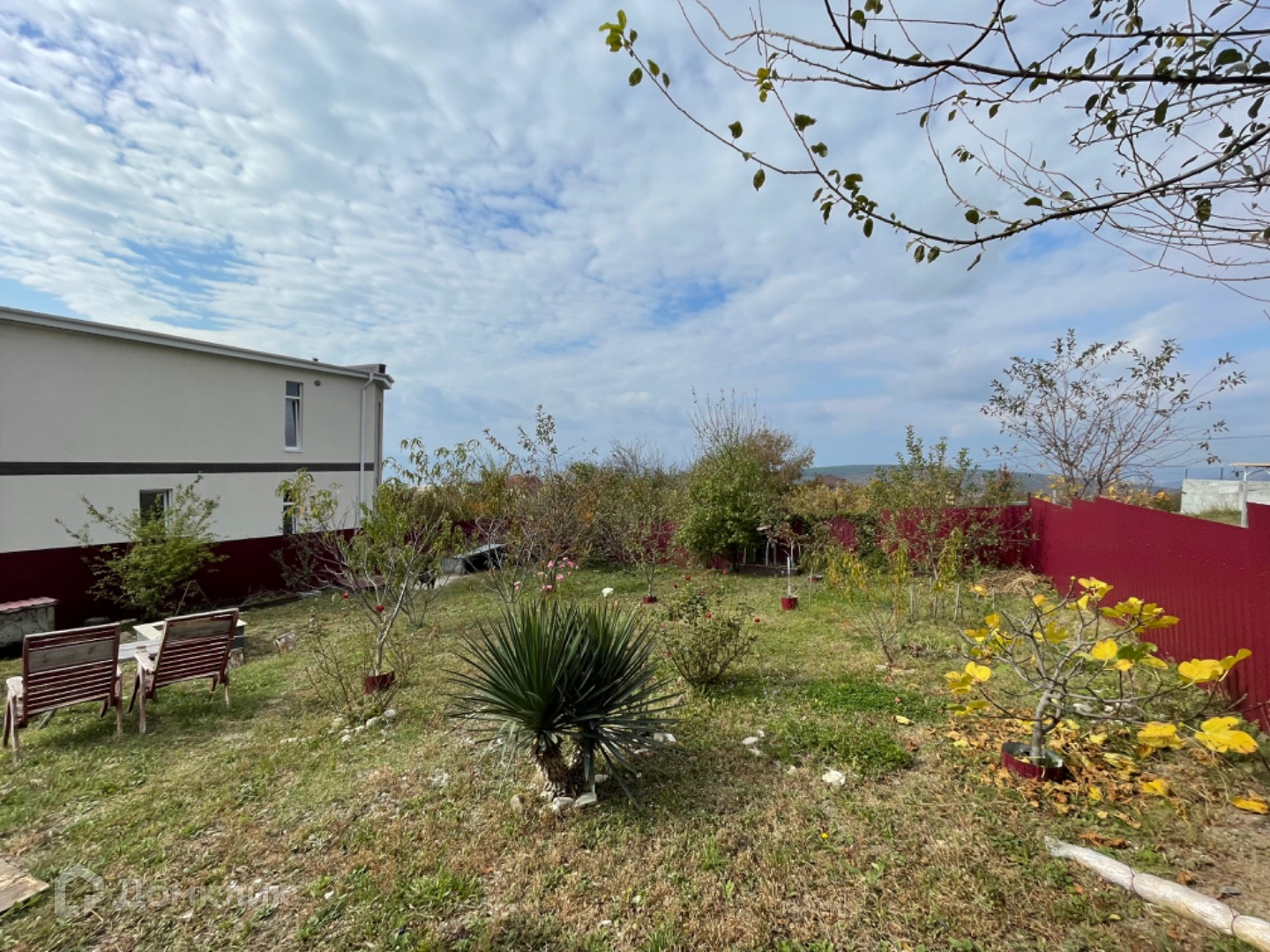 На участке новые плодоносящие деревья: яблони 4 вида, черешня, 2 вишни, персик, абрикос, нектарин, груша, слива, инжир, виноград, орех и конечно цветы (розы) и т.д.