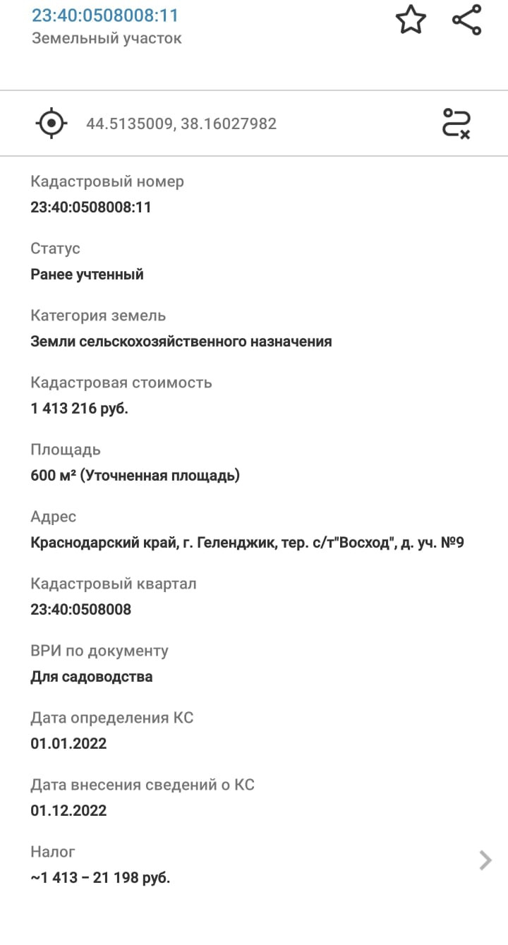 Предлагаем вашему вниманию великолепный земельный участок, расположенный в непосредственной близости от морского побережья. Этот ровный, благоустроенный участок площадью 6 соток в СНТ "Восход" (23:40:0508008:11).