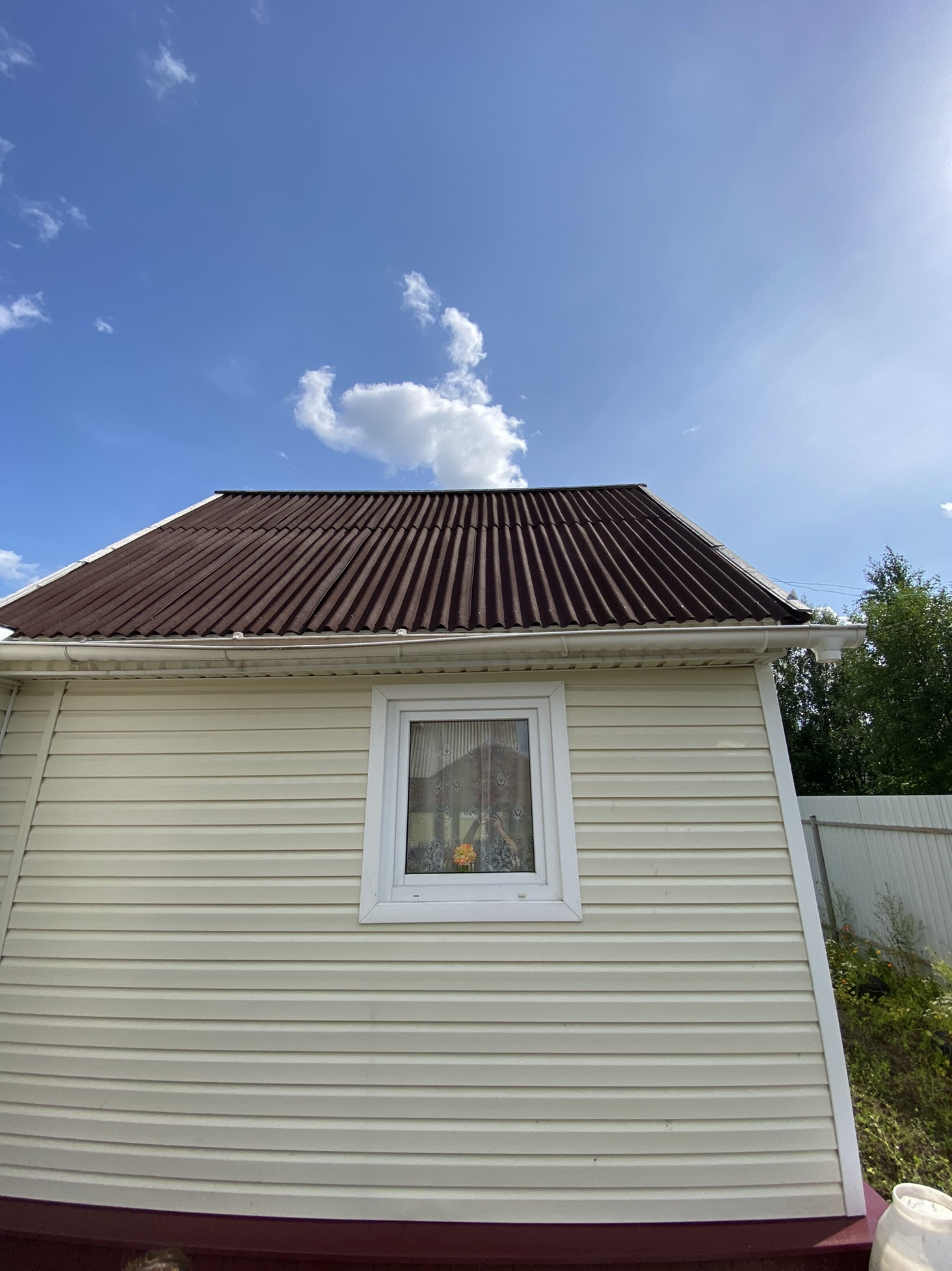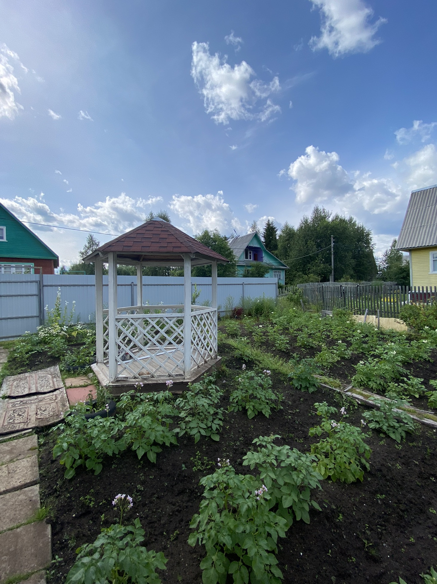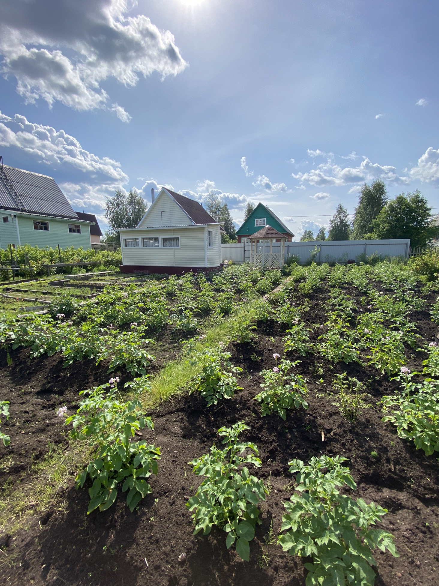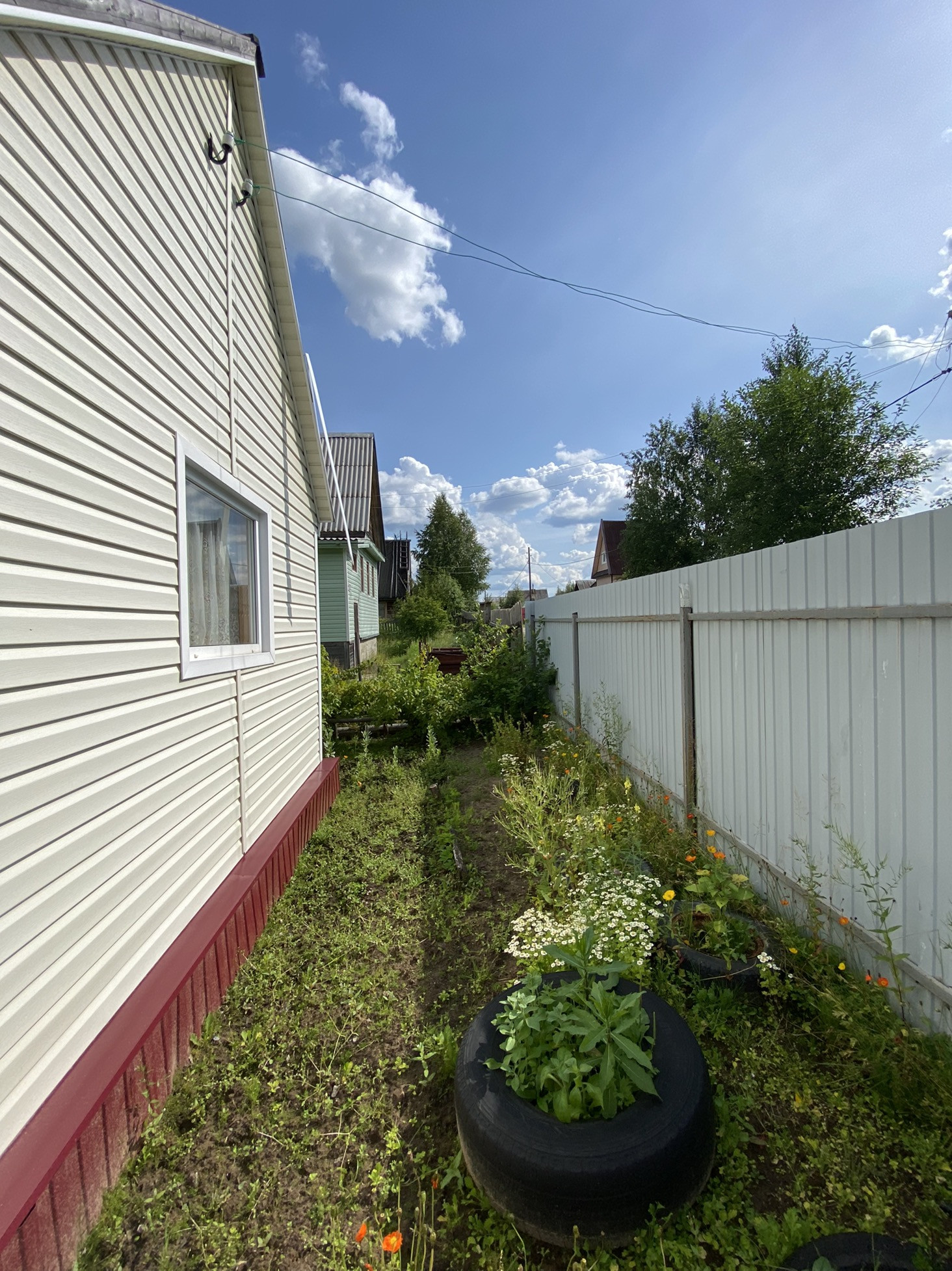 Новая летняя баня и бруса, беседка. Так же есть сарай для дров, погреб и старый дом.