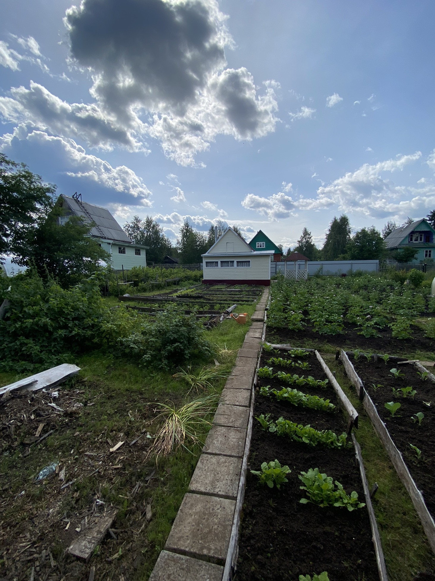 Участок полностью разработан, много посадок, ягодные кусты, для полива есть вода.