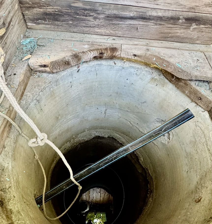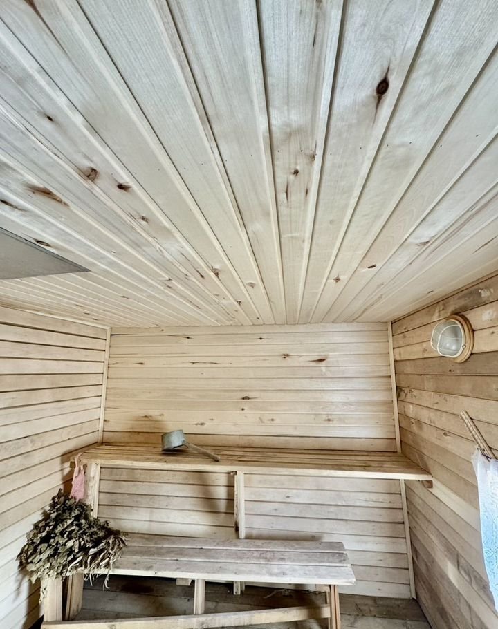 -На участке дом, баня-брус, хозблок. Участок правильной формы, ровный и сухой, высокий, вода не стоит. Водоснабжение-свой колодец глубиной 4 метра.