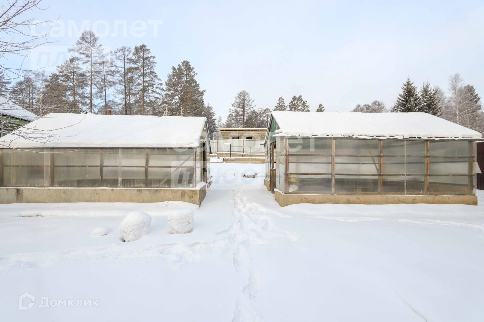 На участке две теплицы и часть участка выровнена под огород. Также есть баня и мастерская рядом с домом. Дом готов к проживанию, заезжай живи, есть отдельный пожарный выход.