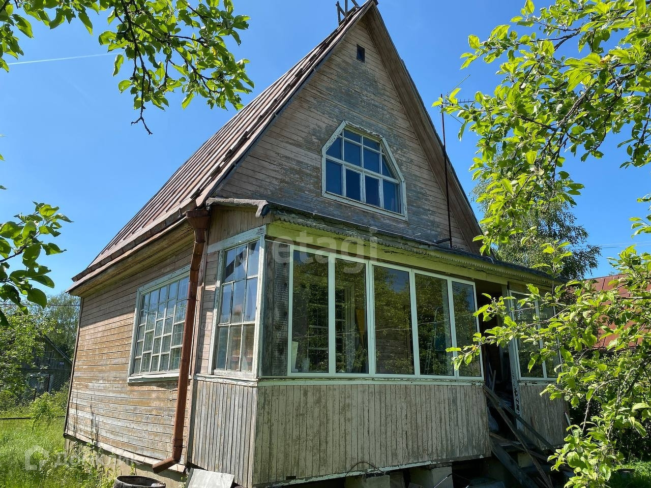 Двухэтажный дом с 3-мя изолированными, светлыми комнатами, большой гостинной, удобной лестницей на второй этаж, открытой верандой, расположен на ровном и ухоженном участке площадью 6 соток. Соседи со всех сторон построены и есть те кто живут в снт постоянно.
