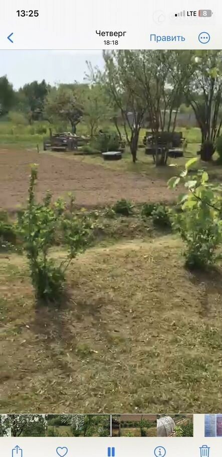 Первый участок 6,8 соток, дачный домик, скважина, уличный туалет, грядки, яблони, вишни, сливы, много ягодных кустарников, картофельное поле. Земля обработана. Стоимость 400 000 рублей.