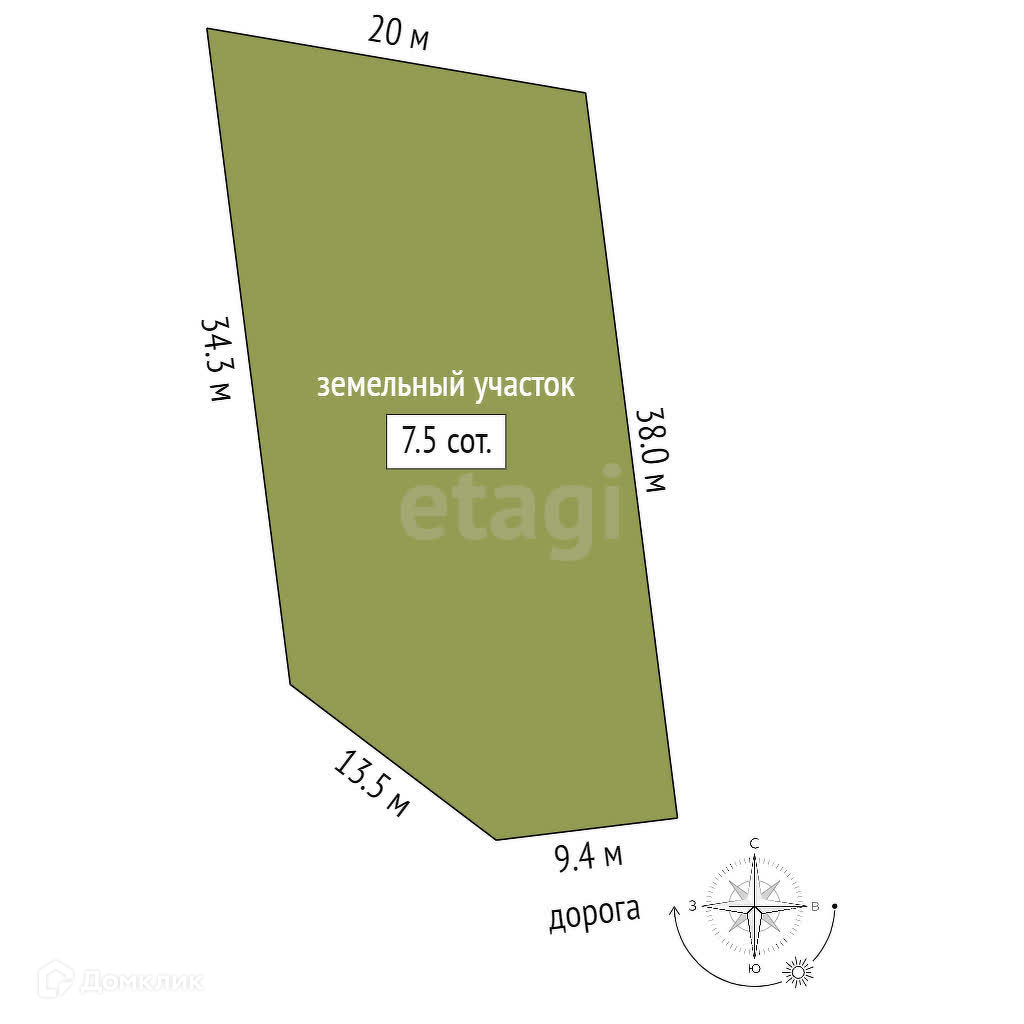 Площадь участка 7.5 сот.
