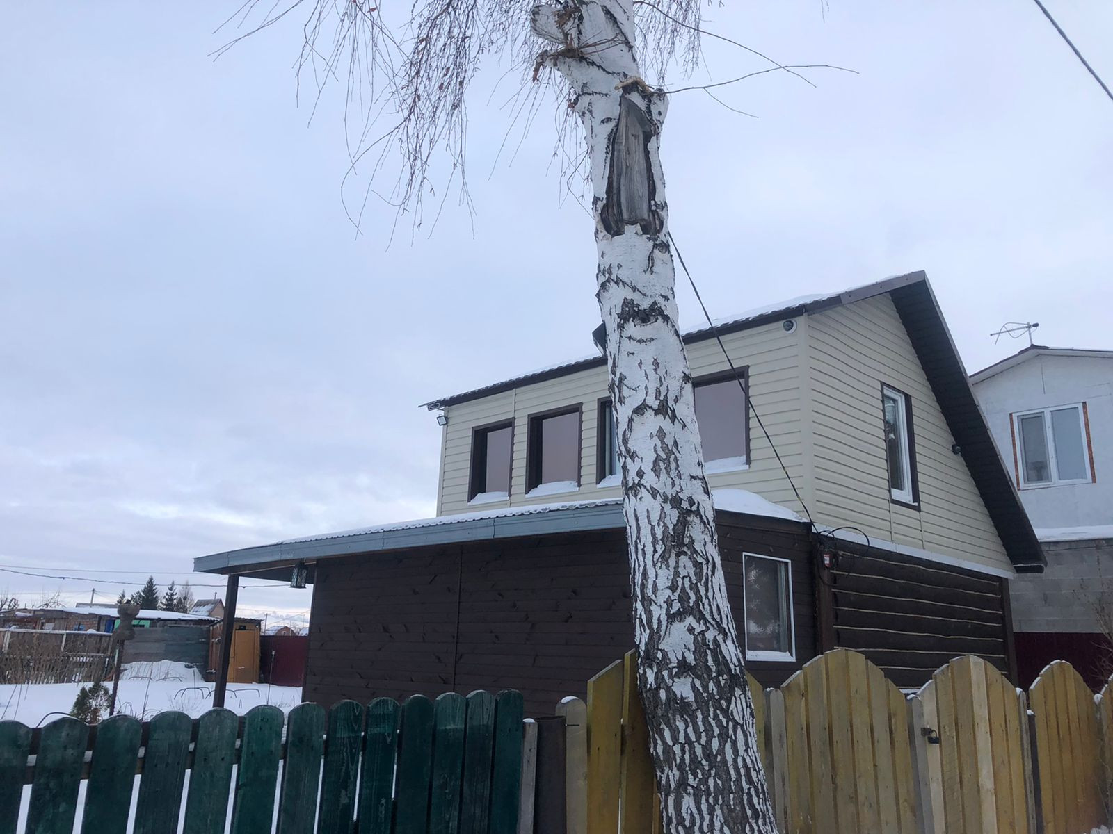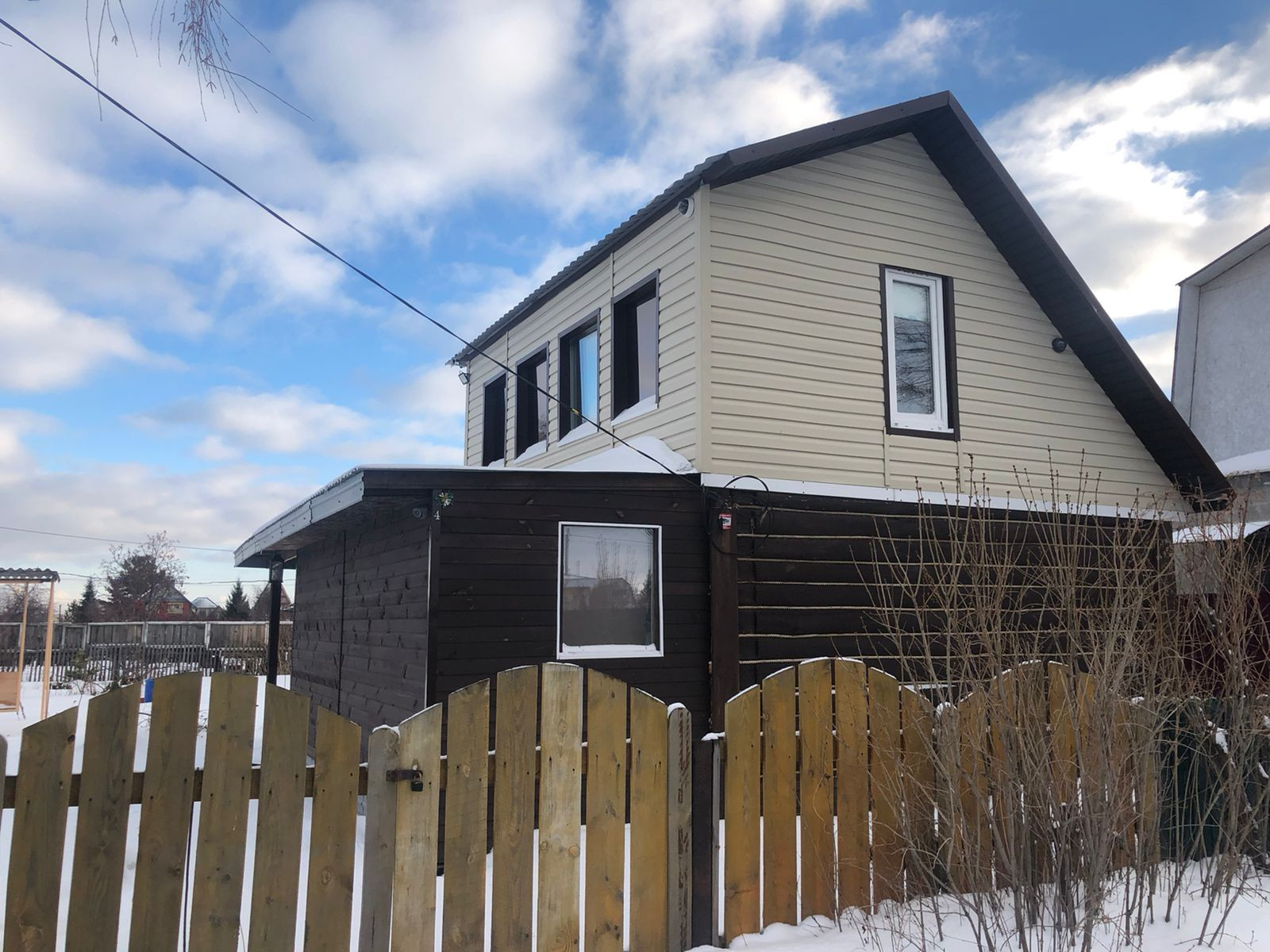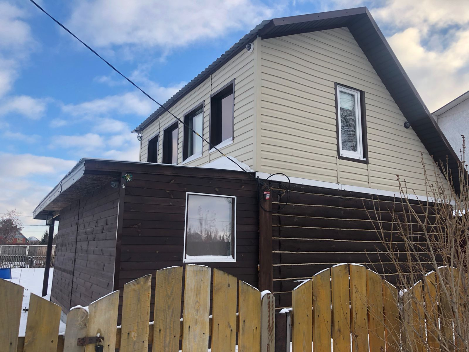 Дом обшит сaйдингом,тротуарная плитка, летняя веранда, плaстикoвыe окнa,на втором этаже комната.