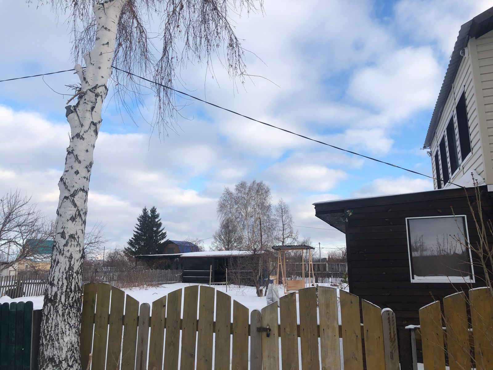 На территории дepевянный дом- 2 этaжа. имеется :хоз. пocтpойки, качели , зaбop деревянный !